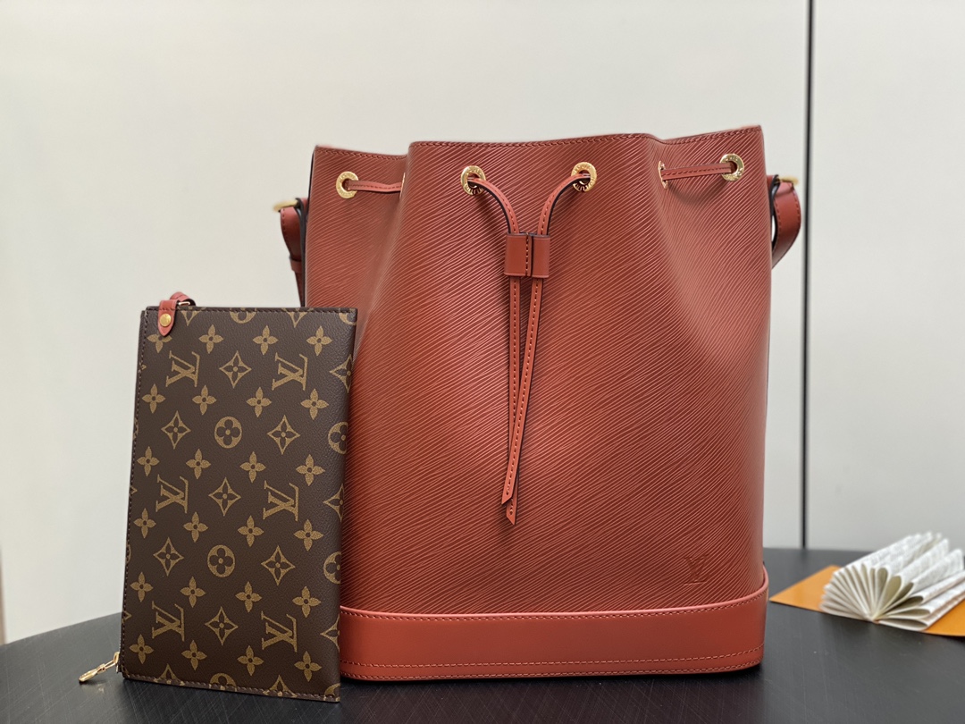 This is a replica LOUIS VUITTON M12604 Noé MM. ,10.6 x 13 x 7.9 inches ,Kenyan Fauve,Epi grained leather,Cowhide-leather trim,Microfiber lining,Gold-toned hardware,1 removable pouch,Drawstring closure,Fits: 13-inch laptop, Zippy Wallet, earphones and keys,Strap:Removable, adjustable,Strap drop:10.8 inches,Strap drop max:12.4 inches