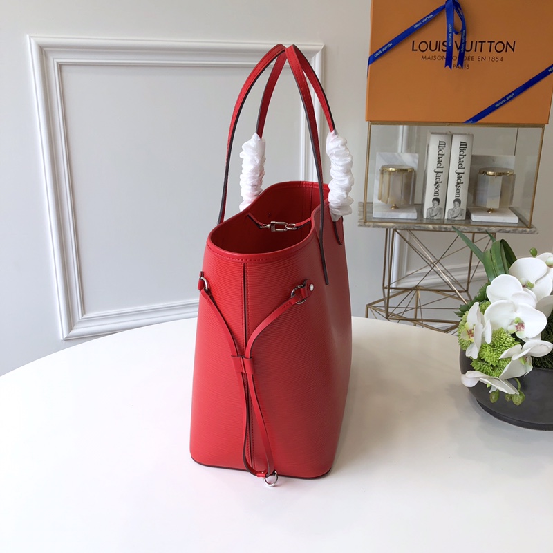 This is a replica LOUIS VUITTON M12755 Neverfull MM. ,12.2 x 11 x 5.5 inches ,Castillan Red,Epi grained leather,Cowhide-leather trim,Microfiber lining,Silver-toned hardware,1 hook closure,1 inside removable zipped pouch,4 side laces,Fits: smartphone, keys, Zippy wallet and 13-inch laptop,Handle:Double