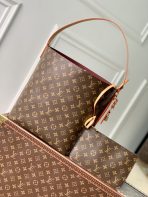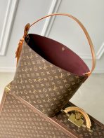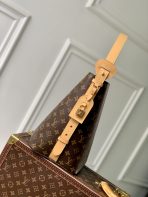 ,Just as its name suggests, the All In GM bag is generously sized to offer plenty of space for the essentials, including a laptop. Crafted from signature Monogram canvas, the bucket-style bag features an adjustable leather strap inspired by Louis Vuitton luggage from the 1930s. It has a two-in-one design, so it can be styled open or flat depending on the closure. It is finished with sleek gold-coloured hardware.,