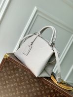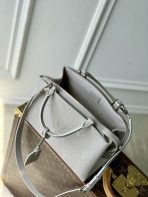This is a replica LOUIS VUITTON M13803 Petit Palais Bag. ,29 x 18 x 12.5 cm ,Mist Grey,Cowhide leather,Cowhide leather trim,Microfibre lining,Silver-colour hardware,2 outside flat compartments,2 flat inside pockets,Zip closure,Padlock name tag,Fits 11-inch tablet, smartphone, keys, Zippy wallet,Strap: Removable, adjustable,Strap Drop: 47.0 cm,Strap Drop Max: 54.0 cm,Handle: Single x2