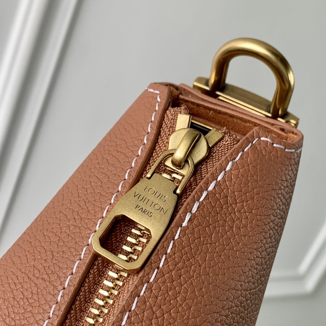 This is a replica LOUIS VUITTON M14642 Low Key Cookie MM Bag. ,32 x 26 x 5 cm ,Cognac Brown,Calf leather,Calf leather trim,Calf leather lining,Aged gold-colour hardware,Fully zipped closure,1 removable Monogram pouch,Fits 11-inch tablet, smartphone, Clémence long wallet, earphones, keys, sunglasses, lipstick, other belongings,Strap: Non-removable, adjustable,Strap Drop: 34.0 cm,Strap Drop Max: 58.0 cm,Handle: Single