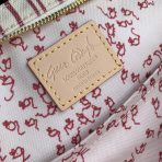 This is a replica LOUIS VUITTON M15121 Carry It Bag. ,37 x 37 x 2 cm ,Beige/Plum Purple,Cotton-canvas,Cowhide leather trim,Textile lining,Gold-colour hardware,Zip closure,Inside flat pocket,Fits smartphone, Zippy Wallet, keys, lipstick,Handle: Single x2