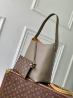 This is a replica LOUIS VUITTON M15205 Hobo PM Bag. ,24 x 28 x 16 cm ,Smoke,Calf leather,Calf leather trim,Calf leather lining,Aged gold-colour hardware,1 hook closure,1 removable Monogram zipped pouch,Fits small tablet, smartphone, earphones, Zippy Wallet, keys, lipstick,Strap: Non-removable, adjustable,Strap Drop: 27.0 cm,Strap Drop Max: 45.5 cm