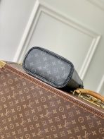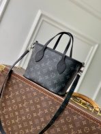 This is a replica LOUIS VUITTON M15210 Neverfull Bandoulière Inside Out BB Bag. ,26.5 x 16.5 x 11 cm ,Monogram Eclipse/Black,Coated canvas,Cowhide leather trim,Grained cowhide leather lining,Silver-colour hardware,1 hook closure,Removable zipped pouch,Fits 6.7-inch smartphone, earphones, Rosalie coin purse, keys, lipstick,Strap: Removable, non-adjustable,Strap Drop: 50.0 cm,Handle: Single x2