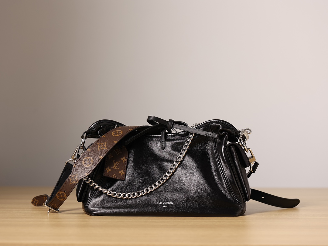 This is a replica LOUIS VUITTON M24861 CarryAll Cargo Vibe PM. ,33.5 x 23 x 15 cm ,Black,Lambskin,Cowhide leather trim,Microfibre lining,Silver-colour hardware,Zipped inside pocket,2 outer pockets,Fits 6.7-inch smartphone, Zippy wallet, tissues, lipstick, earphones, sunglasses, keys,Weight: 0.7 kg,Strap: Removable, adjustable,Strap Drop: 32.0 cm,Strap Drop Max: 48.0 cm,Chain: Removable,Chain Drop: 24.0 cm