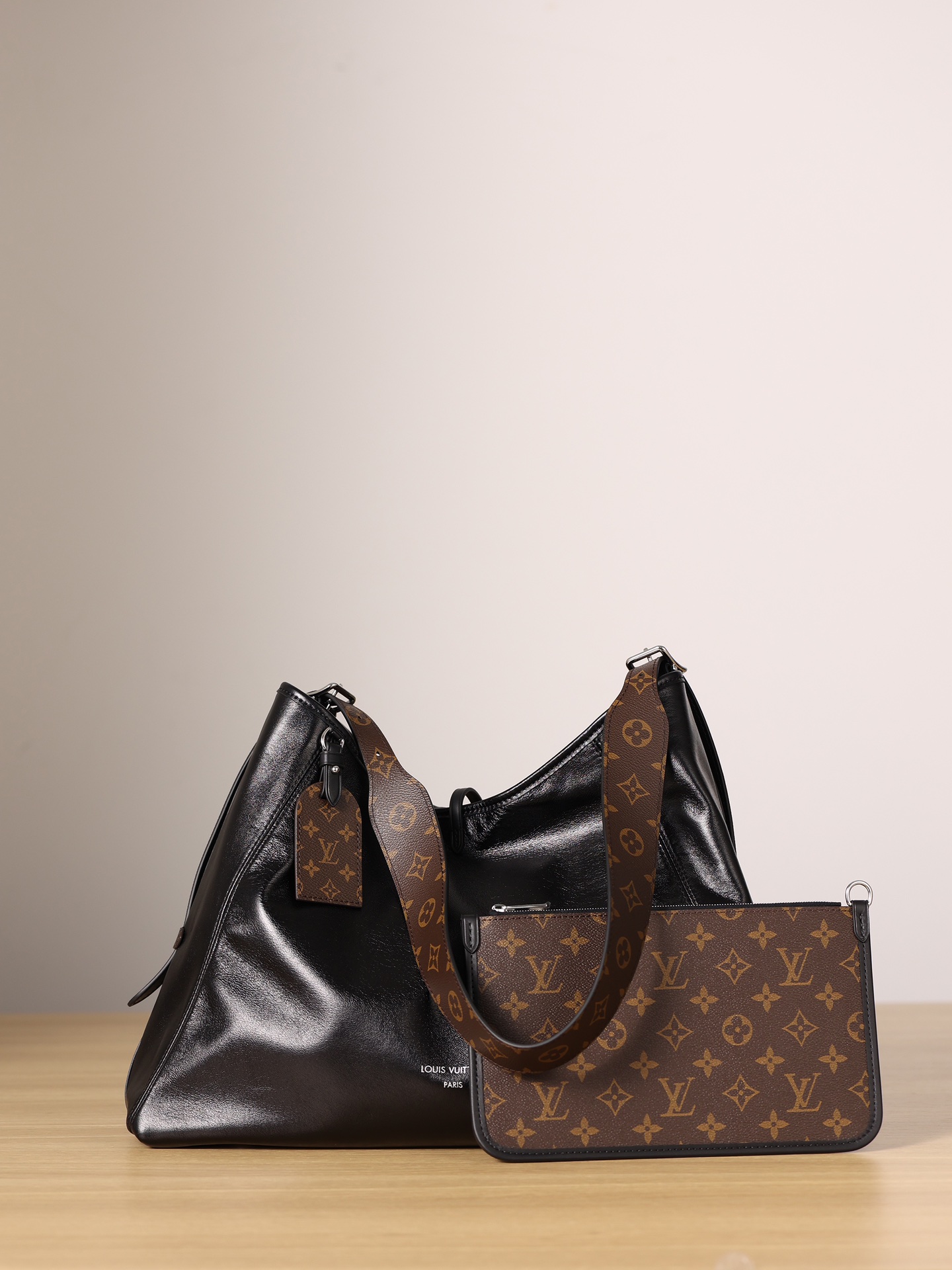 This is a replica LOUIS VUITTON M25143 CarryAll Vibe MM. ,39 x 30 x 15 cm ,Black,Lambskin,Cowhide leather trim,Microfibre lining,Silver-colour hardware,Zipped inside pocket,Inside removable zipped pocket,Fits 13-inch laptop, Zippy wallet, tissues, lipstick, 6.7-inch smartphone, earphones, sunglasses, keys,Weight: 0.9 kg,Strap: Removable, adjustable,Strap Drop: 32.0 cm,Strap Drop Max: 56.0 cm,Handle: Single, removable