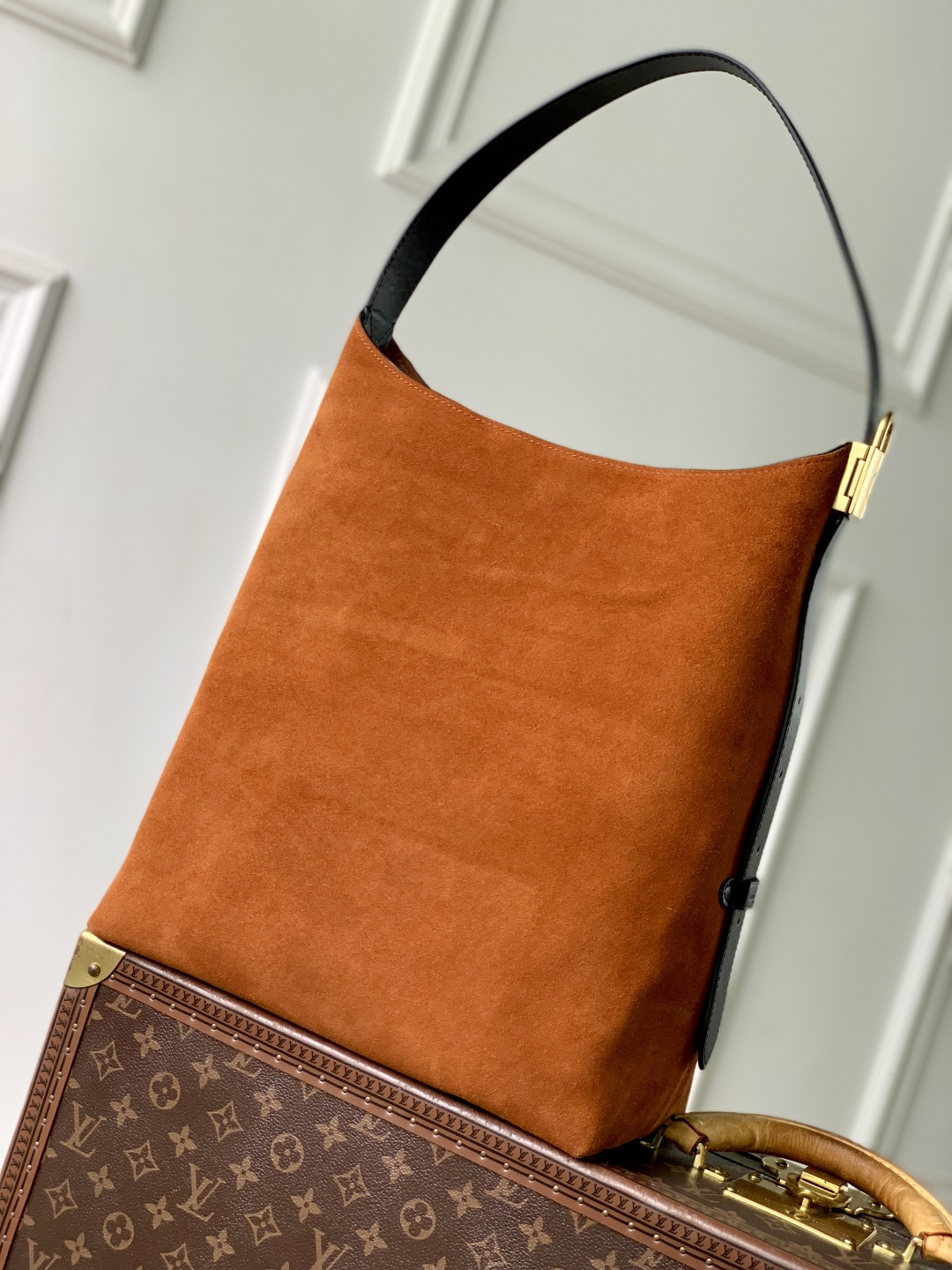 This is a replica LOUIS VUITTON M25516 Hobo MM Bag. ,31 x 35 x 18 cm ,Tan Brown,Suede calf leather,Calf leather trim,Calf leather lining,Aged gold-colour hardware,1 hook closure,1 flat inside pocket,1 removable Monogram zipped pouch,Fits small tablet, smartphone, Zippy Wallet, book, keys, lipstick,Strap: Non-removable, adjustable,Strap Drop: 16.0 cm,Strap Drop Max: 39.0 cm
