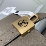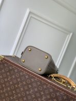 This is a replica LOUIS VUITTON M25544 All In BB.,The Low Key Collection introduces an iconic style to its lineup with this bucket-shaped All In BB bag. It is crafted from grained calfskin adorned with a signature gold-toned padlock, as well as a decorative name tag and removable Monogram pouch that slots neatly inside. Designed to be worn casually as an open bucket bag, the versatile model can also be folded flat to create a pyramidal profile.,