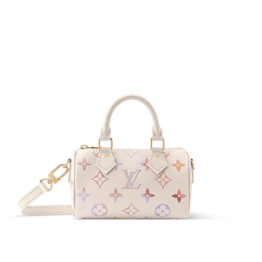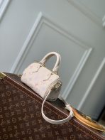 This is a replica LOUIS VUITTON M25591 ,Nano Speedy,6.3 x 3.9 x 3 inches,(Length x Height x Width),Dream Beige,Embossed grained cowhide leather,Grained cowhide-leather trim,Microfiber lining,Light gold-toned hardware,Zipper closure,Fits: smartphone, earphones, Clea wallet, keys, sunglasses, lipstick,Strap:Removable, adjustable,Strap drop:17.9 inches,Strap drop max:21.3 inches