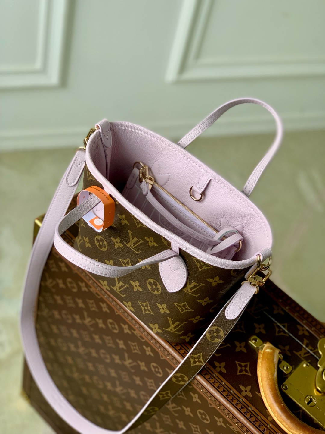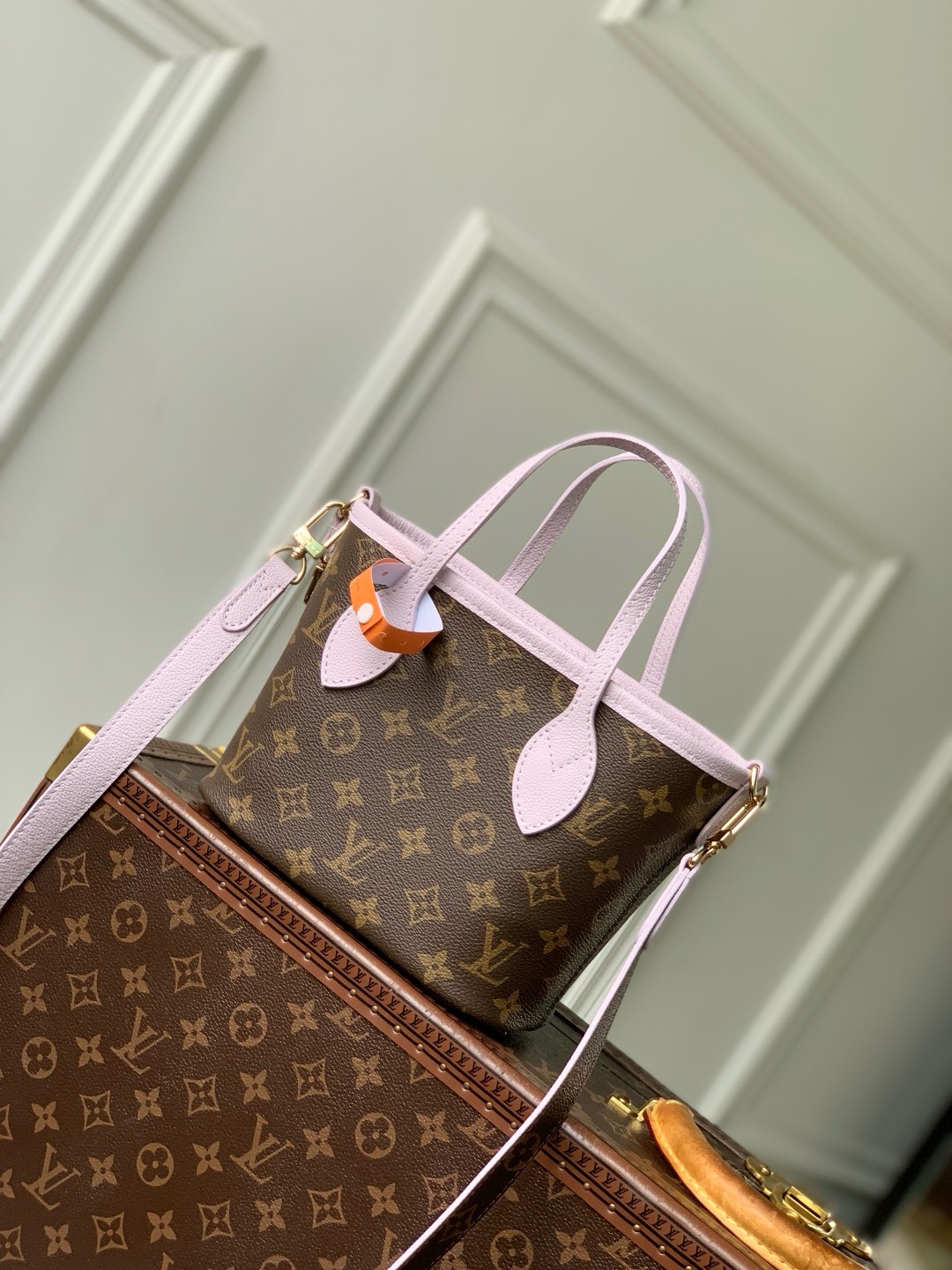 This is a replica LOUIS VUITTON M25656 Neverfull Bandoulière Inside Out BB. ,10.4 x 6.5 x 4.3 inches ,Lavender cowhide leather/Monogram Coated Canvas,Grained cowhide leather and coated canvas,Cowhide-leather trim,Gold-toned hardware,Removable zipped pouch,Hook closure,Fits: Smartphone, Rosalie Coin Purse, keys, earphones, lipstick, tissues,Weight: 0.5 kg,Strap:Removable, not adjustable,Strap drop:19.7 inches,Handle:Double