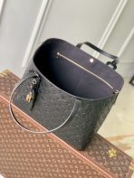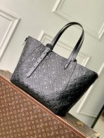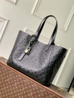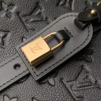 This is a replica LOUIS VUITTON M25860 All In One MM Bag.,Ideal for work to weekend getaways, the All In One MM bag lives up to its name as a versatile design that can be styled as a tote or hobo bag. Capturing the House’s iconic heritage with a trunk-inspired handle, it is offered in Monogram Empreinte leather with gold-toned hardware, including a signature LV padlock and name tag. Lightweight yet robust, it is sized to fit a laptop among other everyday essentials.,