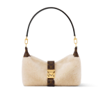 This is a replica LOUIS VUITTON M26245 Mia Pochette. ,22 x 14.5 x 8 cm ,Cream,Shearling,Coated canvas trim,Microfibre lining,Gold-colour hardware,Magnetic S-lock closure,Handle: Single, removable
