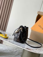 This is a replica LOUIS VUITTON M26284 Noé BB. ,22 x 17.5 x 13 cm ,Monogram coated canvas,Leather trim,Textile lining,Gold-colour hardware,Fits 6.7-inch smartphone, earphones, Victorine wallet, keys, lipstick,Strap: Removable, non-adjustable,Strap Drop: 46.0 cm,Handle: Single