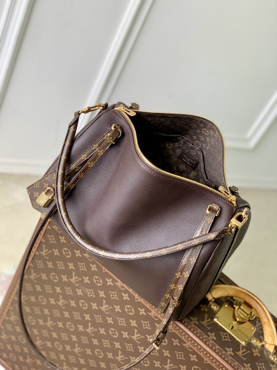 This is a replica LOUIS VUITTON M26397 Express MM Bag. ,36 x 24 x 18.5 cm ,Monogram/Acajou Brown,Calfskin,Coated canvas trim,Textile lining,Gold-colour hardware,Double zip closure,Removable key bell with removable padlock (can be placed on zip pulls),Strap: Removable, adjustable,Strap Drop: 44.0 cm,Strap Drop Max: 48.0 cm,Handle: Single x2