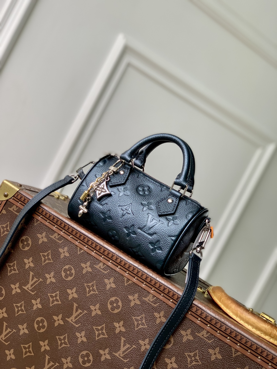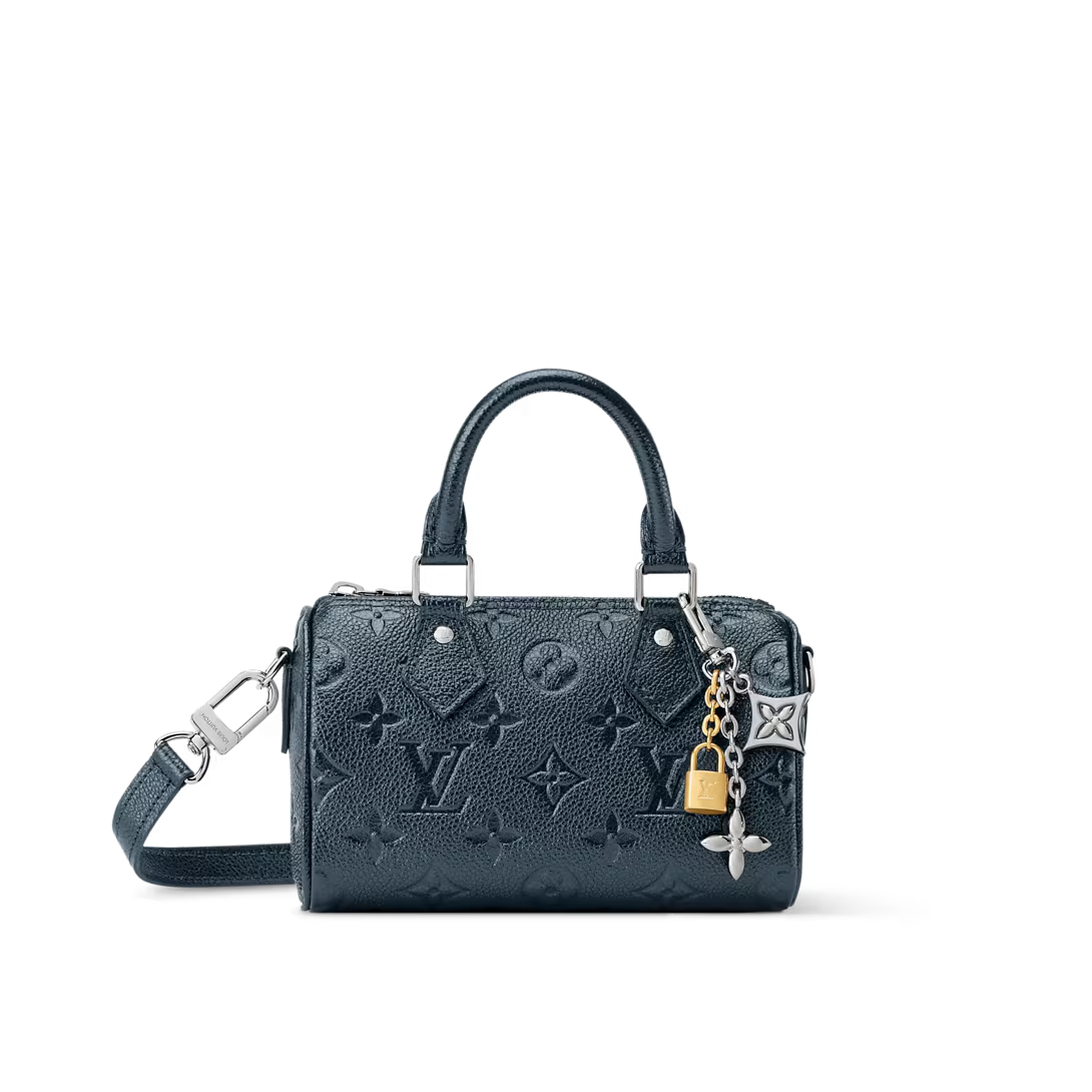 This is a replica LOUIS VUITTON M26510 Nano Speedy. ,16 x 10 x 7.5 cm ,Shimmery Ink,Cowhide leather,Cowhide leather trim,Microfibre lining,Silver-colour hardware,Zip closure,1 removable charm in a gold, silver-colour and ruthenium finish,Fits Rosalie Coin Purse, sunglasses, earphones, keys, 6.7-inch smartphone, lipstick,Strap: Removable, adjustable,Strap Drop: 45.5 cm,Strap Drop Max: 54.0 cm,Handle: Double