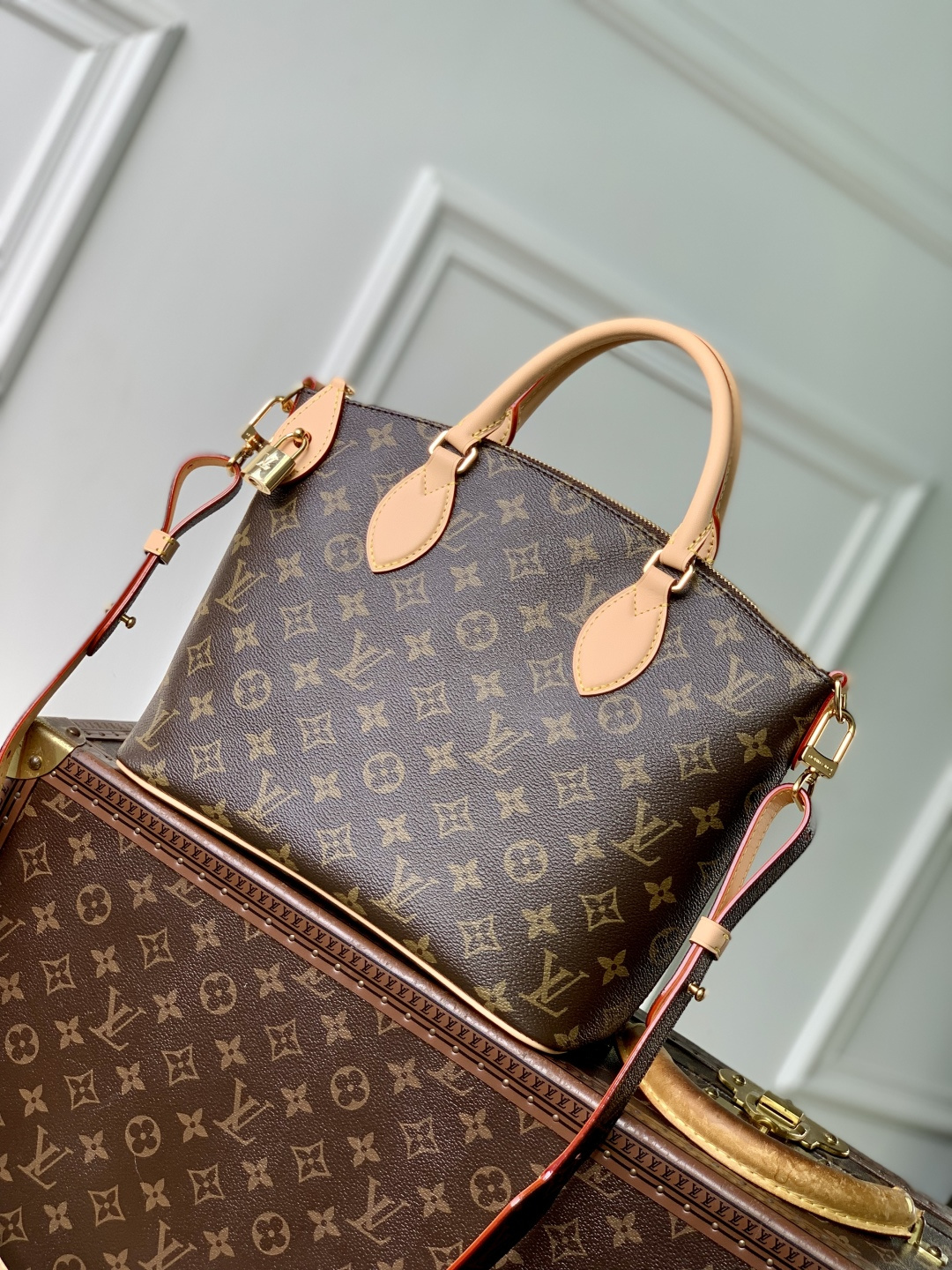 This is a replica LOUIS VUITTON M26532 Neo Lockit PM. ,33 x 24 x 12 cm ,Monogram coated canvas,Cowhide leather trim,Microfibre lining,Gold-colour hardware,Zip closure with padlock and keys,1 flat inside pocket,Fits 6.7-inch smartphone, earphones, Zippy long wallet, small book, lipstick, keys,Strap: Removable, non-adjustable,Strap Drop: 29.0 cm,Handle: Single x2