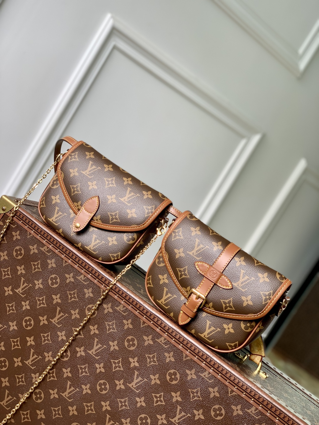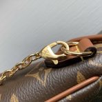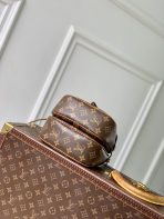 This is a replica LOUIS VUITTON M26592 Duo BB Bag.,A fresh silhouette for Fall-Winter 2025, the Duo BB bag combines unique design with contemporary styling. This playful accessory is a new take on the Saumur bag, crafted from signature Monogram canvas with contrasting cowhide trims and an adjustable strap. It can be worn around the waist, with each compartment sitting on the hips, or separated into two separate bags. The gold-colour hardware lends a sophisticated finish.,