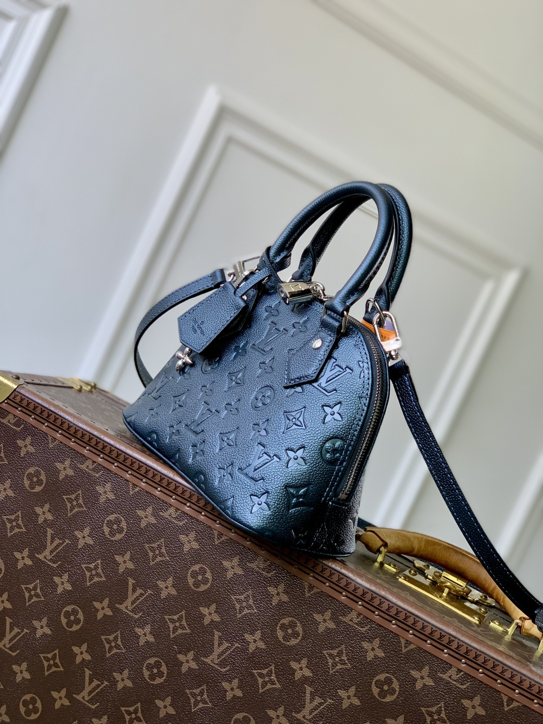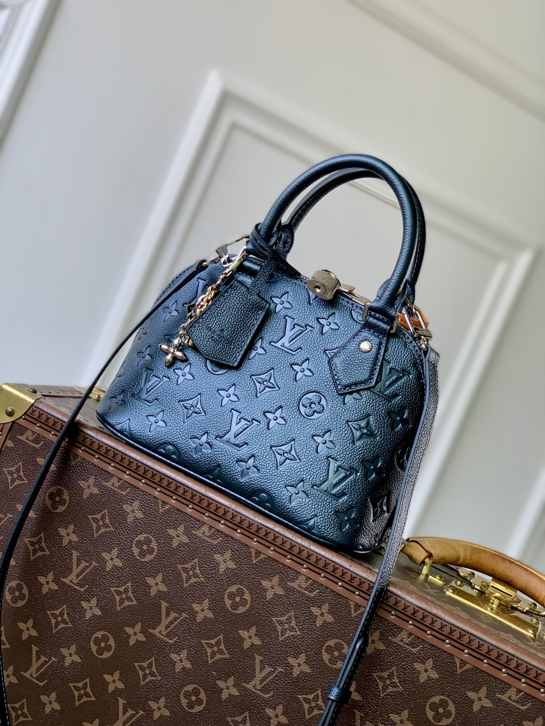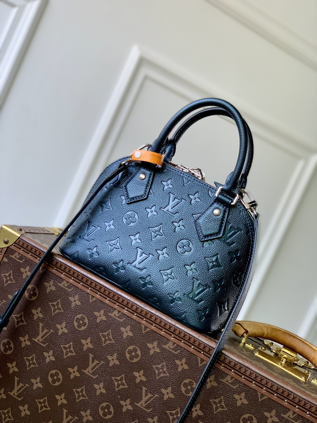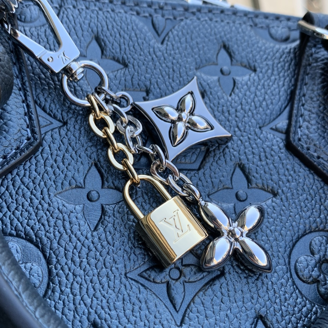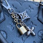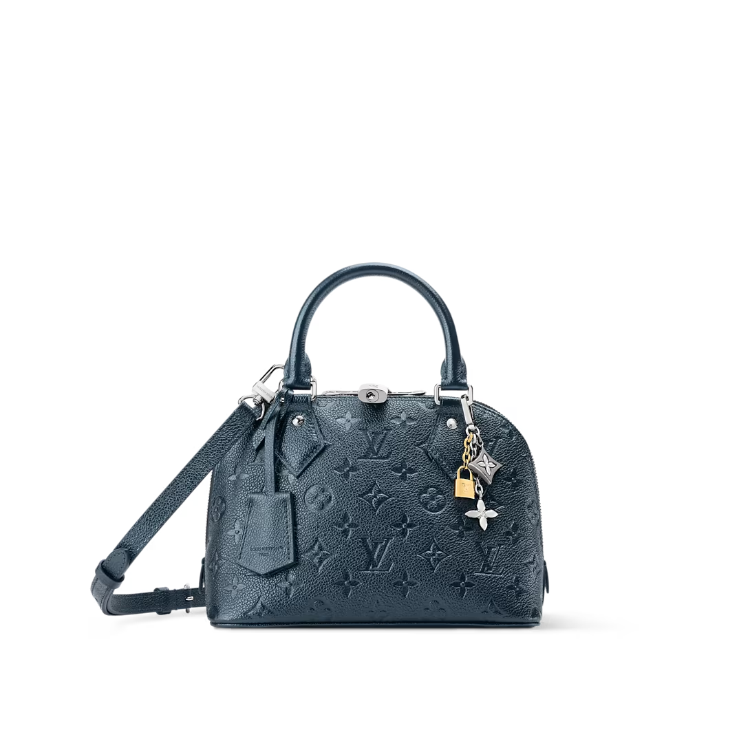 This is a replica LOUIS VUITTON M26686 Alma BB. ,23.5 x 17.5 x 11.5 cm ,Shimmery Ink,Cowhide leather,Cowhide leather trim,Microfibre lining,Silver-colour hardware,1 removable charm in gold-colour, ruthenium and silver-colour finish,1 zip closure,1 key bell,1 flat inside pocket,4 protective metal base feet,Fits smartphone, earphones, compact wallet, sunglasses,Strap: Removable, non-adjustable,Strap Drop: 56.0 cm,Handle: Single x2,Fits 6.7-inch smartphone, earphones, sunglasses, keys, lipstick,Strap: Removable, non-adjustable,Strap Drop: 52.0 cm,Handle: Single x2