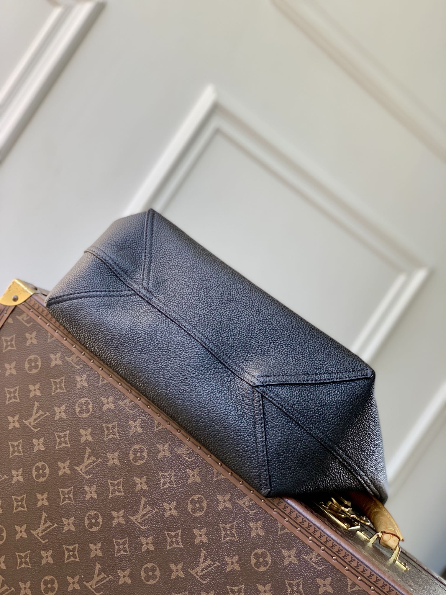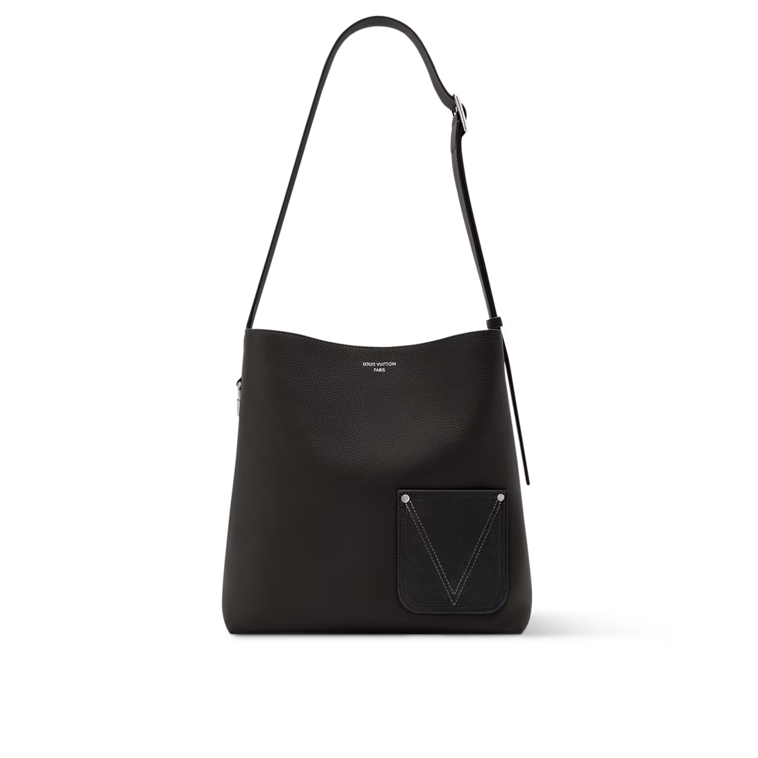 This is a replica LOUIS VUITTON M27022 Verso Hobo Bag. ,30 x 33 x 15.5 cm ,Black,LV Touch cowhide leather,Cowhide leather trim,Suede lining,Silver-colour hardware,Front pocket,Carabiner clip,Inside removable zipped pouch,Inside pocket,Strap: Non-removable, adjustable,Strap Drop: 39.5 cm,Strap Drop Max: 53.0 cm