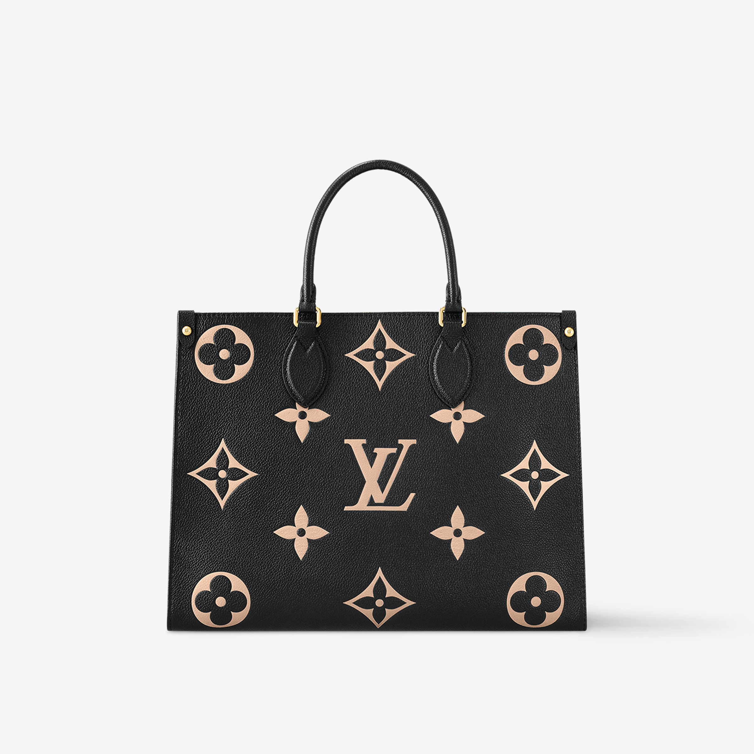 This is a replica LOUIS VUITTON M45495 OnTheGo MM. ,13.8 x 10.6 x 5.5 inches ,Black/Beige,Embossed grained cowhide leather,Grained cowhide-leather trim,Microfiber lining,Gold-color hardware,Inside flat zipped pocket,Inside double pocket,2 long leather shoulder straps (drop: 24 cm),Fits: 13-inch laptop, smartphone, keys, Zippy Long Wallet, earphones,Handle:Double