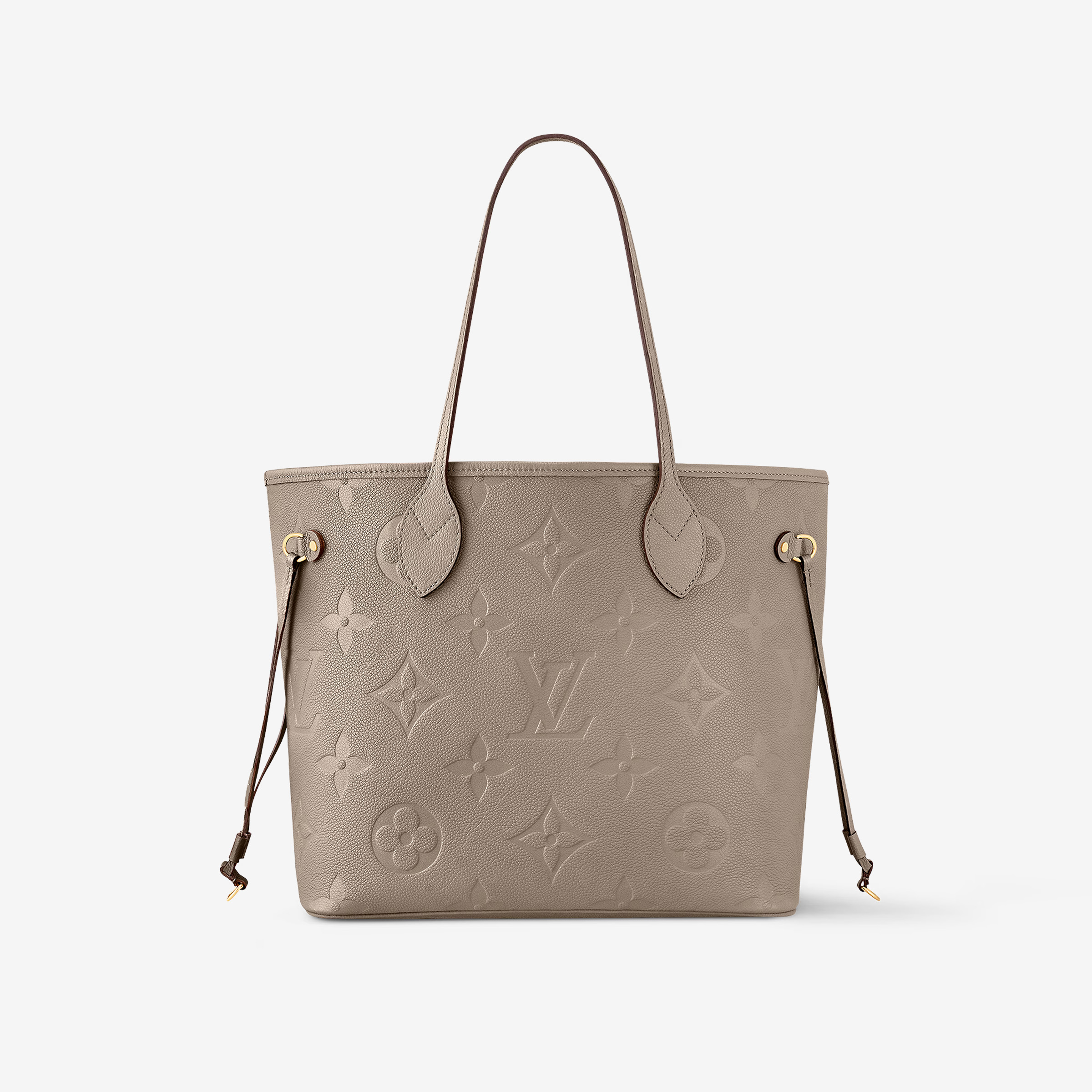 This is a replica LOUIS VUITTON M45686 Neverfull MM. ,12.2 x 11 x 5.5 inches ,Tourterelle Gray,Embossed cowhide leather,Cowhide-leather trim,Microfiber lining,Gold-color hardware,Hook closure,Inside zipped pocket,4 side laces,Fits: 13-inch laptop, Smartphone, keys, Zippy wallet and earphones,Weight: 0.9 kg,Handle:Double