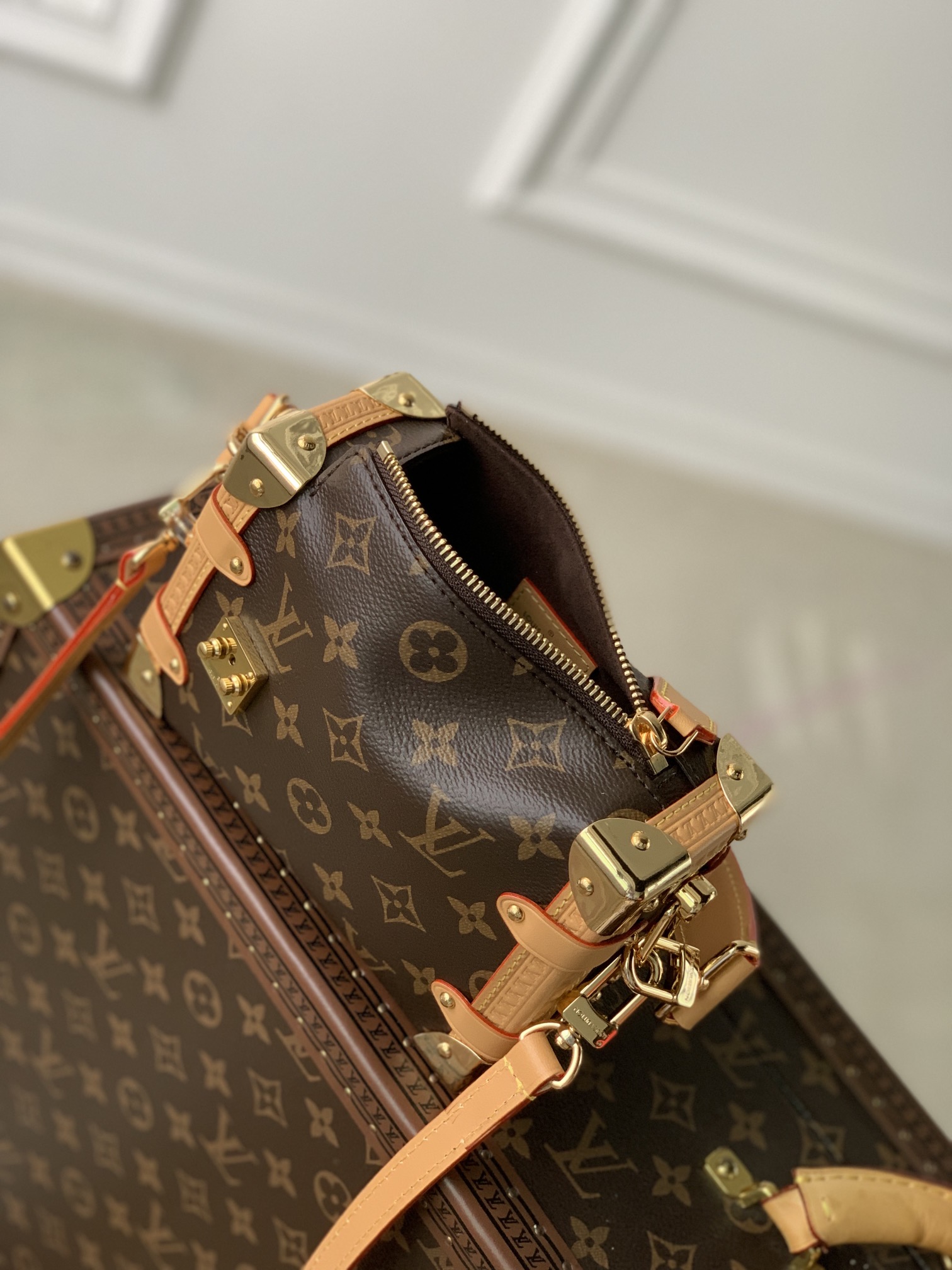 This is a replica LOUIS VUITTON M23915 Side Trunk PM. ,7.5 x 4.9 x 3 inches ,Monogram coated canvas,Cowhide-leather trim,Microfiber lining,Gold-color hardware,Zip closure with side S-Lock,Fits: 6.7-inches smartphone, Victorine Compact Wallet, keys, lipstick,Weight: 0.6 kg,Strap:Removable, adjustable,Strap drop:19.7 inches,Strap drop max:23.6 inches,Handle:Single, removable