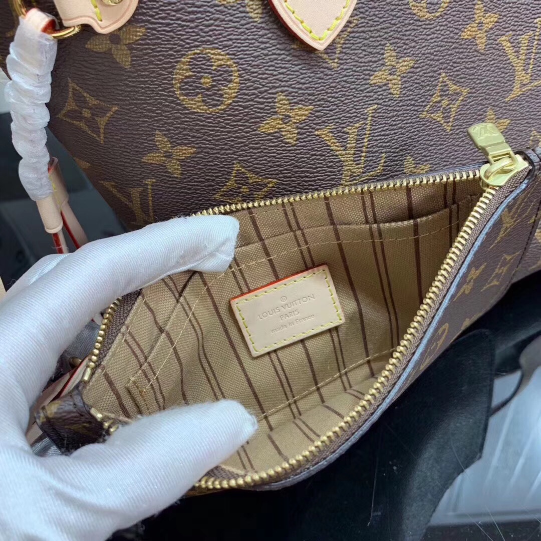 This is a replica LOUIS VUITTON M46979 Neverfull PM. ,11.4 x 8.3 x 4.7 inches,Beige,Monogram coated canvas,Natural cowhide-leather trim,Striped textile lining,Gold-color hardware,4 side laces,Hook closure,Flat, textile-lined zipped inside pocket,Removable zipped pouch,D-ring,Fits: 9-inch tablet, smartphone, Zippy Long Wallet, earphones, sunglasses, keys, tissues, lipstick,Handle:Double