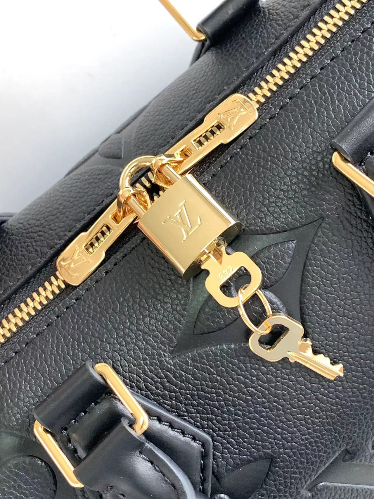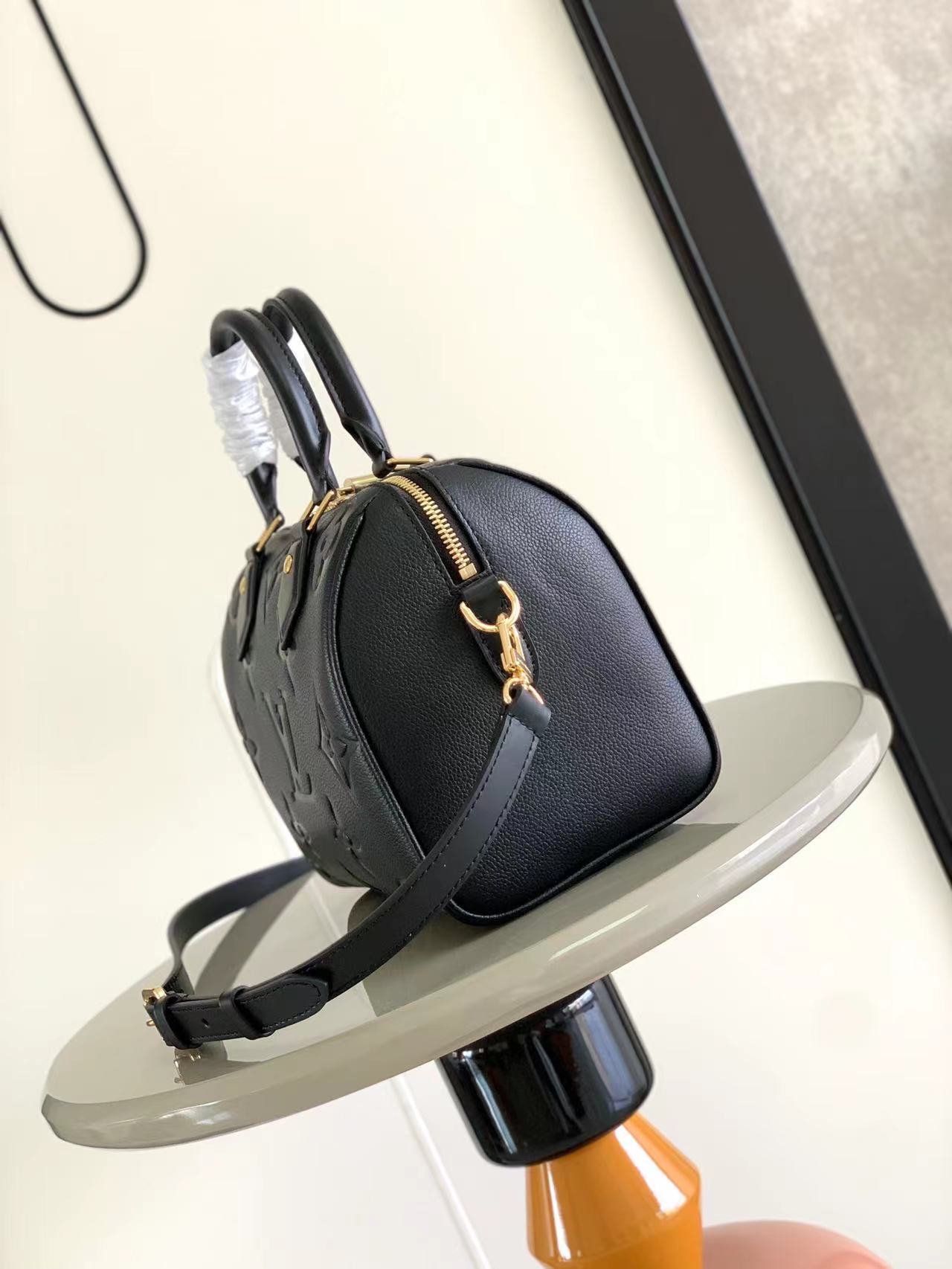 This is a replica LOUIS VUITTON M58951 Speedy Bandoulière 25. ,9.8 x 7.5 x 5.9 inches ,Black,Embossed supple grained cowhide leather,Supple grained cowhide-leather trim,Microfiber lining,Gold-color hardware,Double zip closure,Inside zipped pocket,Inside flat pocket,Padlock,Fits: 6.7-inches smartphone, Sarah Long Wallet, keys, lipstick, tissues, sunglasses,Strap:Removable, adjustable,Strap drop:16.9 inches,Strap drop max:18.9 inches,Handle:Double