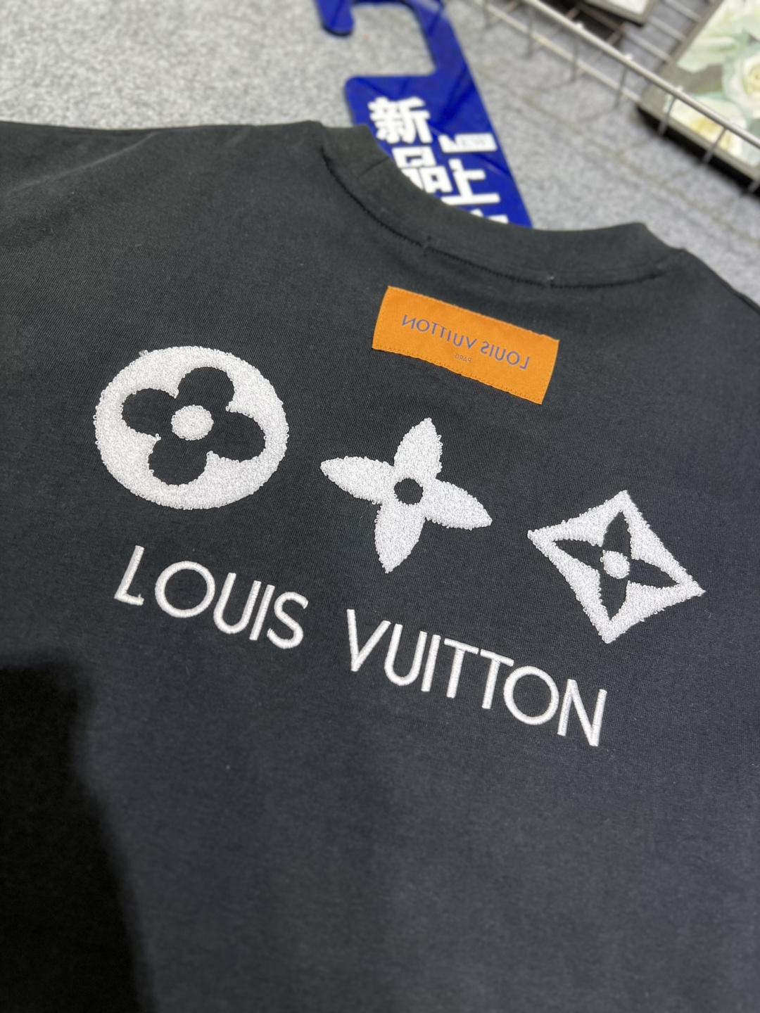 Be the first to review “Lv monogram flocked print back logo cotton t-shirt”