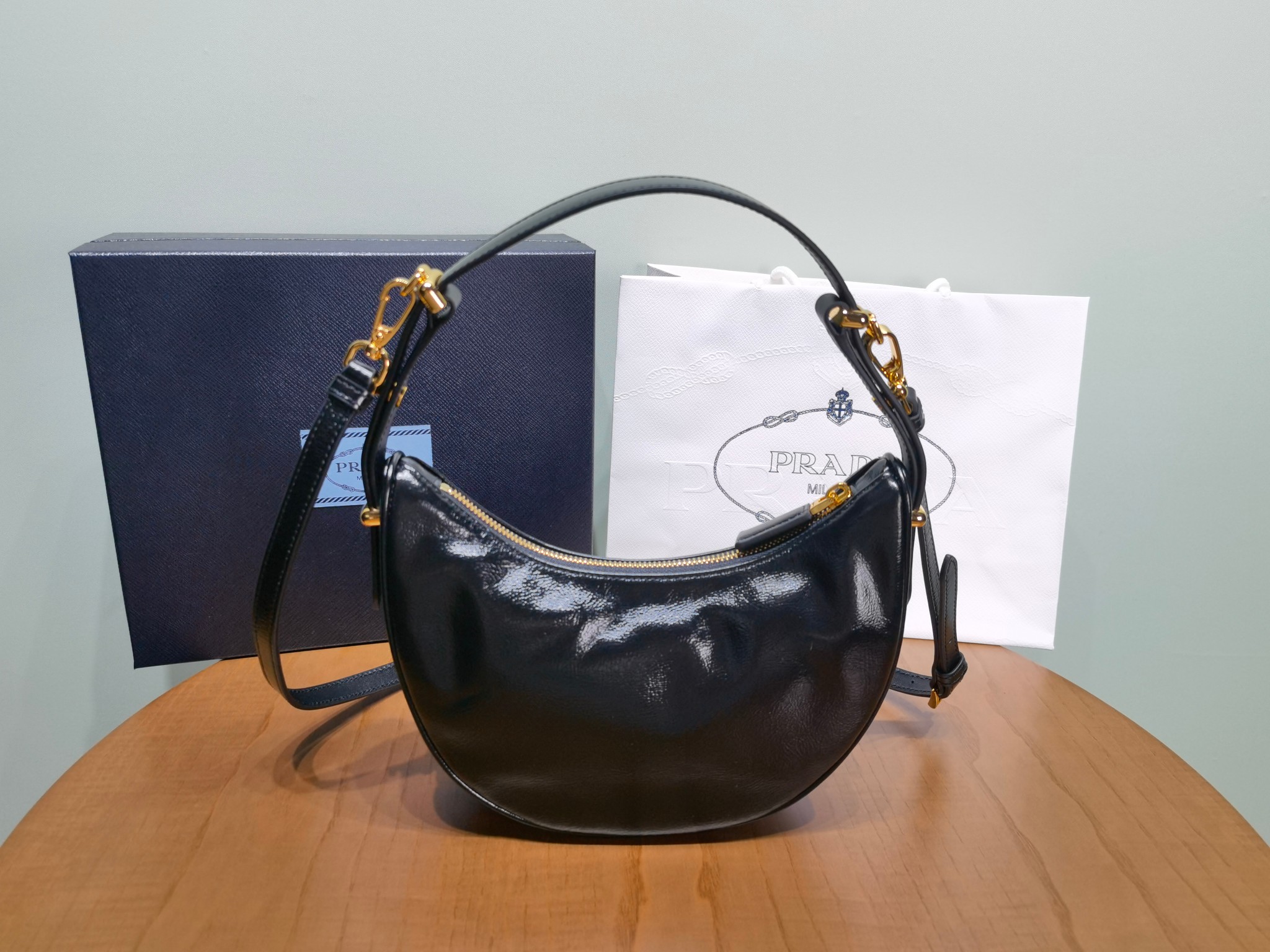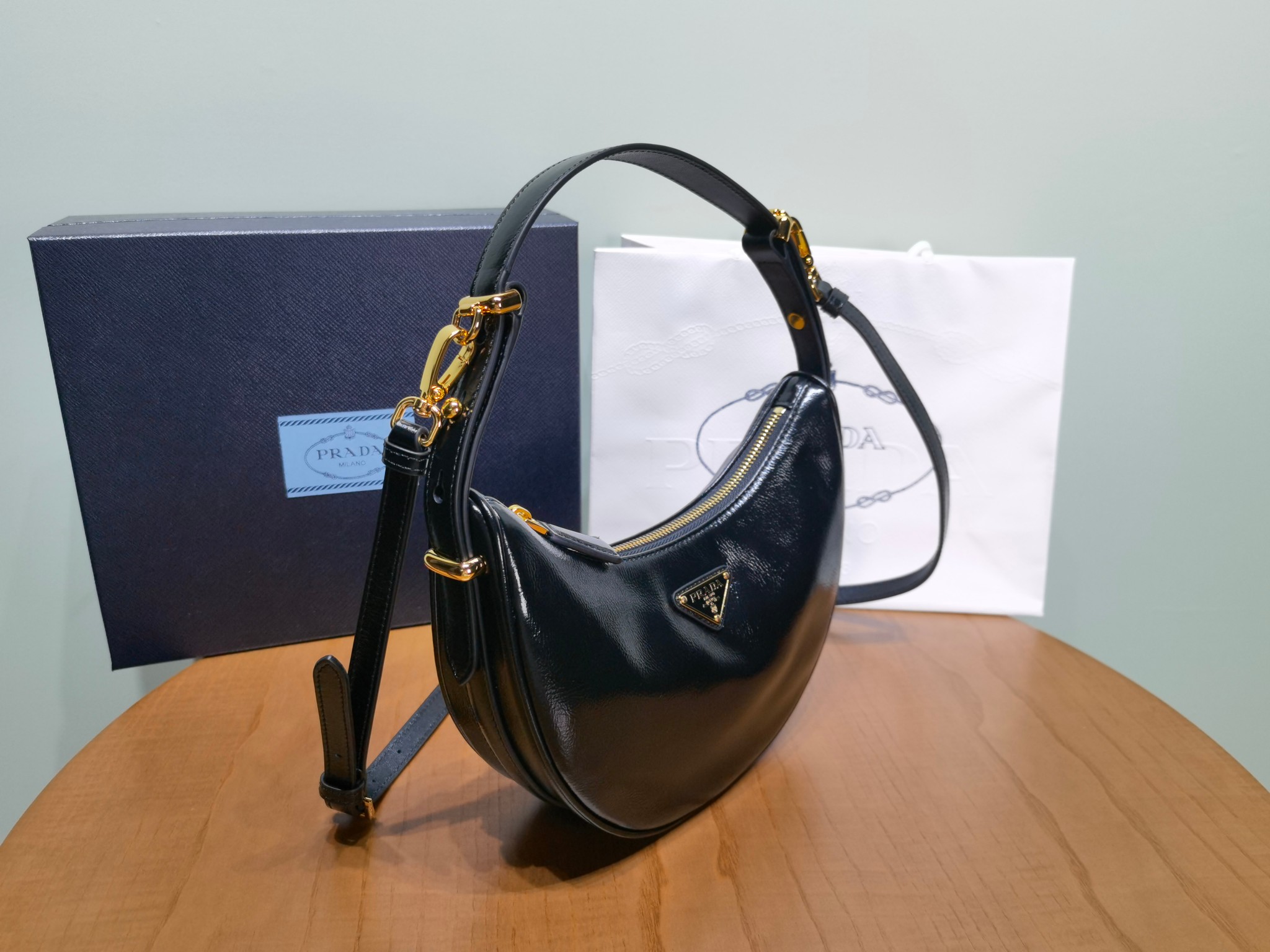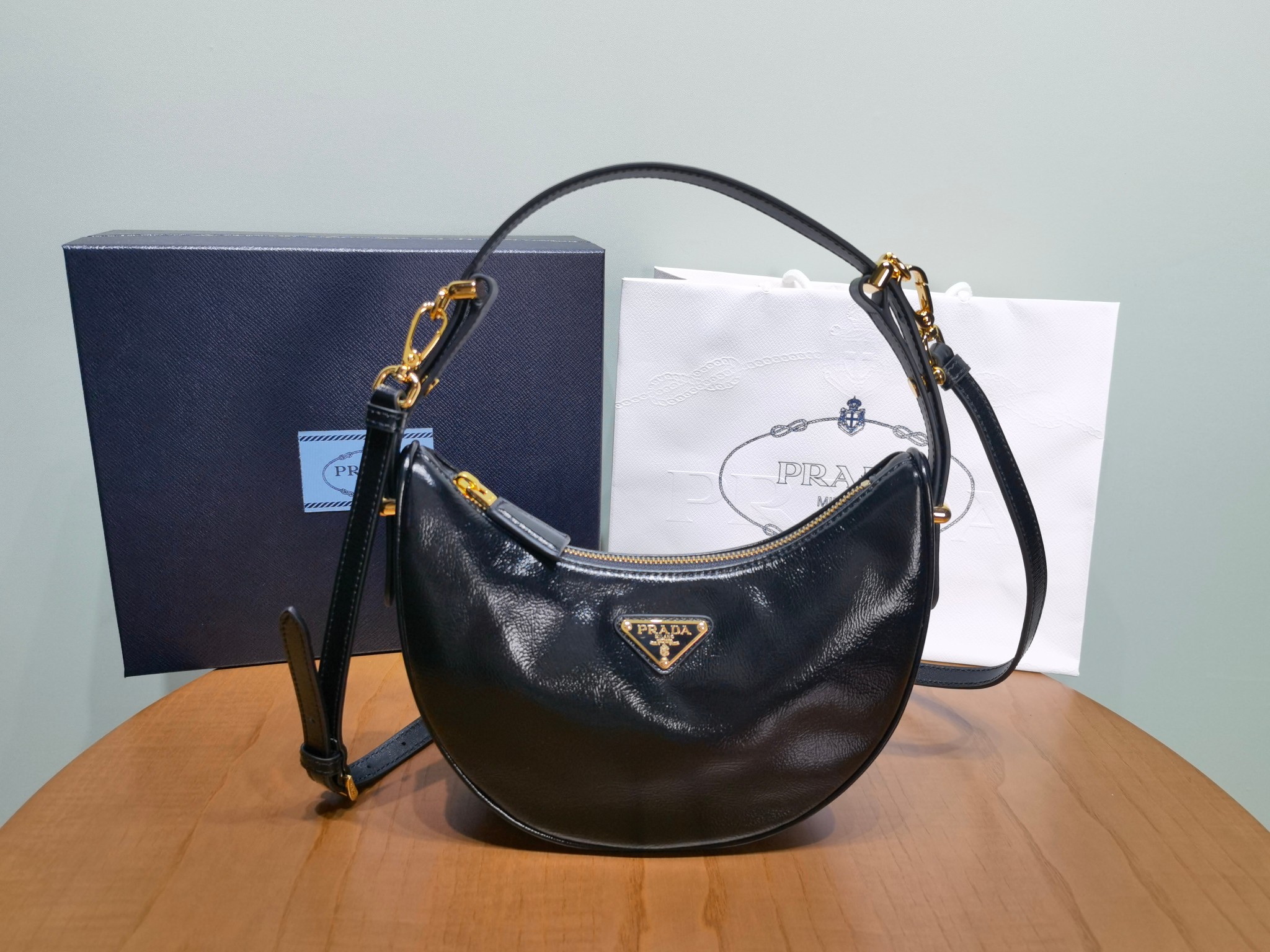 This is a replica Prada 1BC194 Arqué leather small shoulder bag. ,Detachable, adjustable suede handle,Detachable, adjustable suede shoulder strap Maximum length 93 cm – Minimum length 83 cm – Maximum drop 60 cm- Minimum drop 55 cm,Metal hardware,Enameled metal triangle logo on the front,Zipper closure,Nappa leather lining with patch pocket,