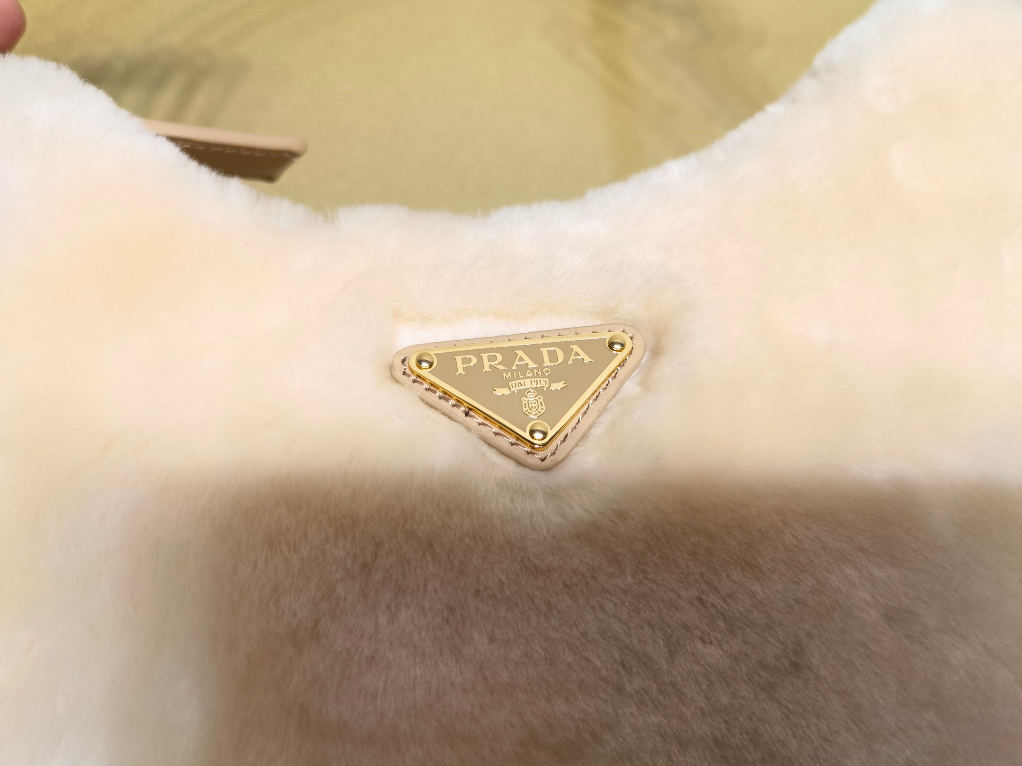 Prada 1BC194 Arqué small shearling and leather shoulder bag