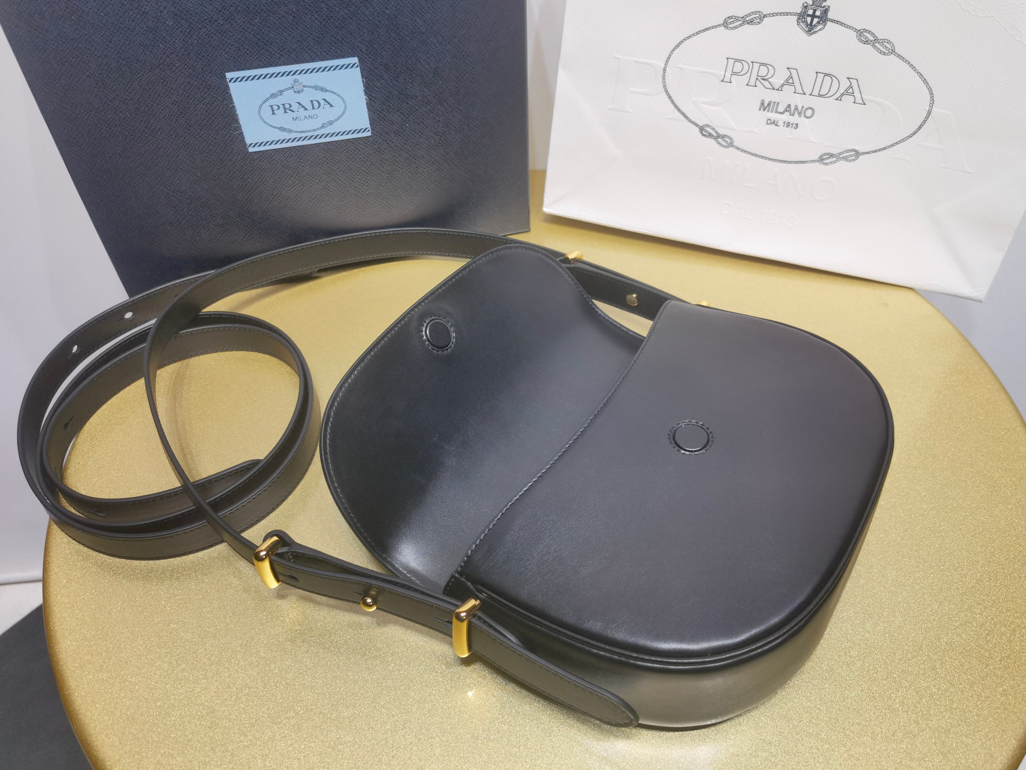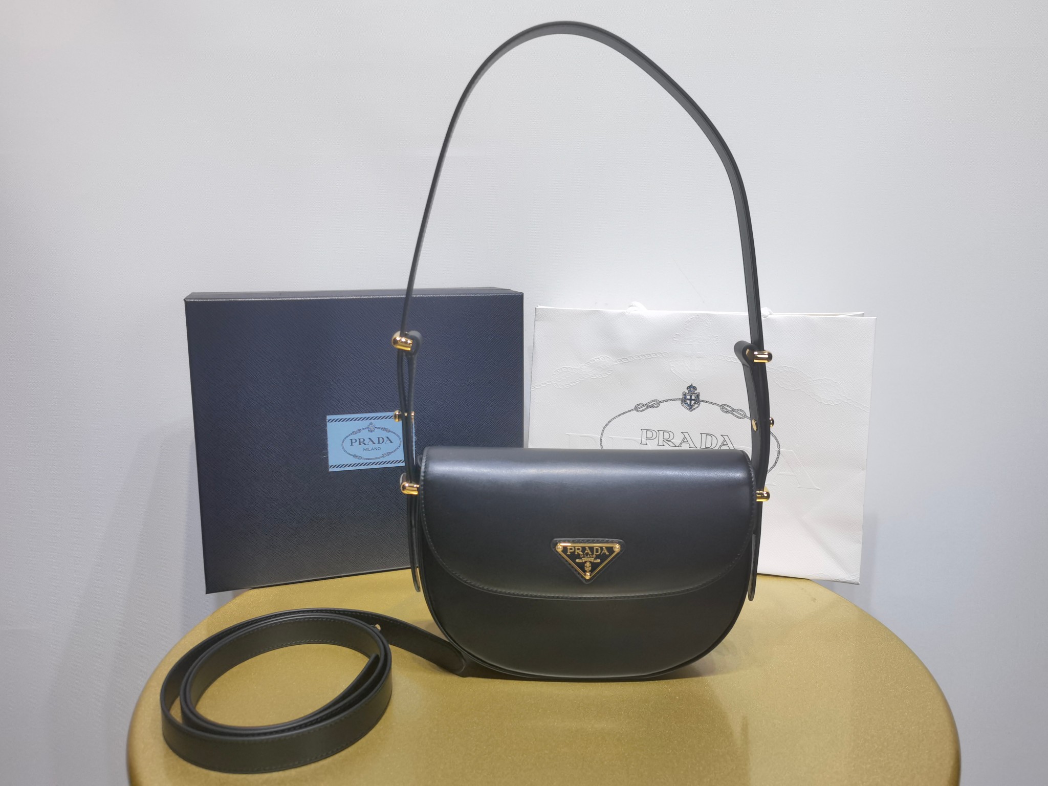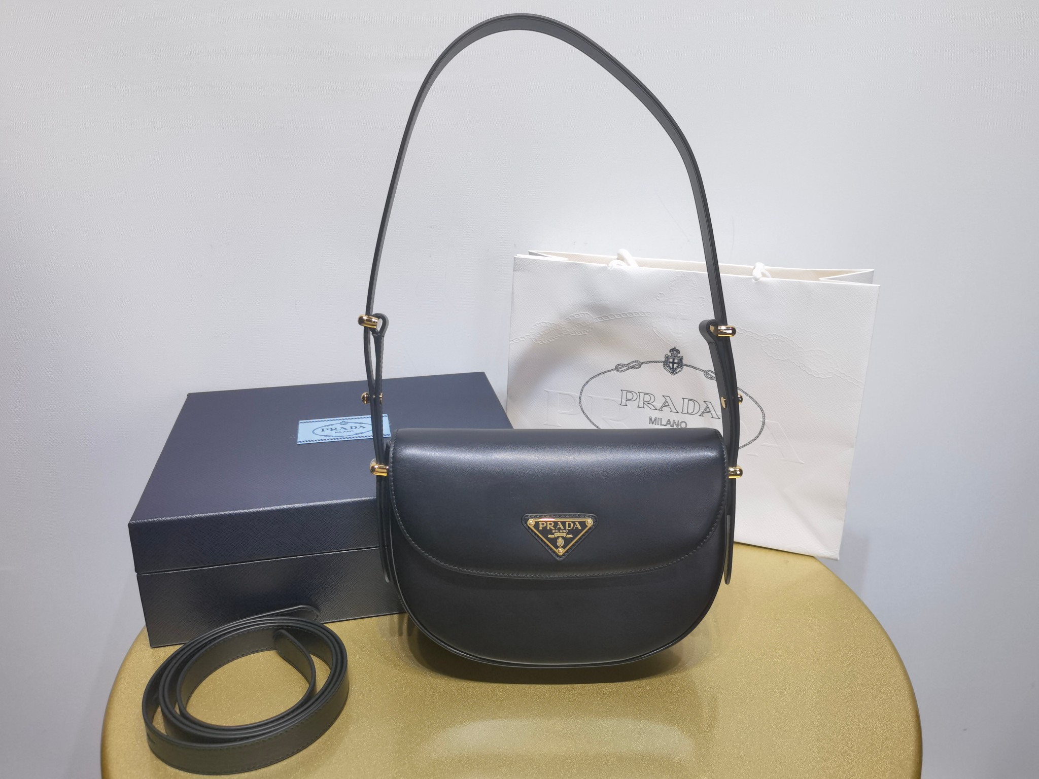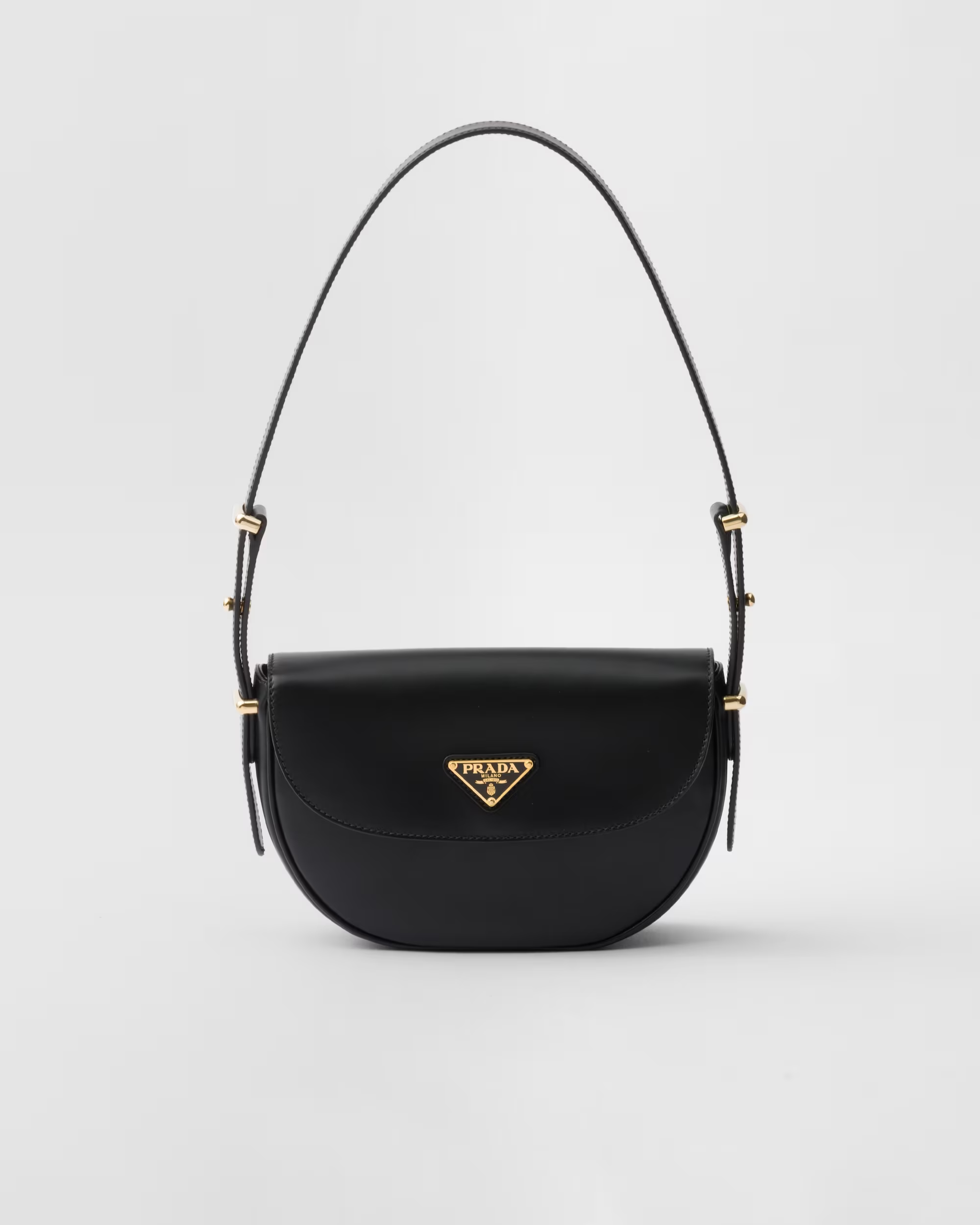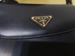 This is a replica Prada Prada 1BD365 Arqué leather shoulder bag with flap. ,Leather handle with extension for cross-body use,Extendible shoulder strap Maximum length 122 cm – Minimum length 56 cm – Maximum drop 56 cm – Minimum drop 23 cm,Metal hardware,Enameled metal triangle logo on the flap,Magnetic closure on the flap,Nappa leather interior with patch pocket,