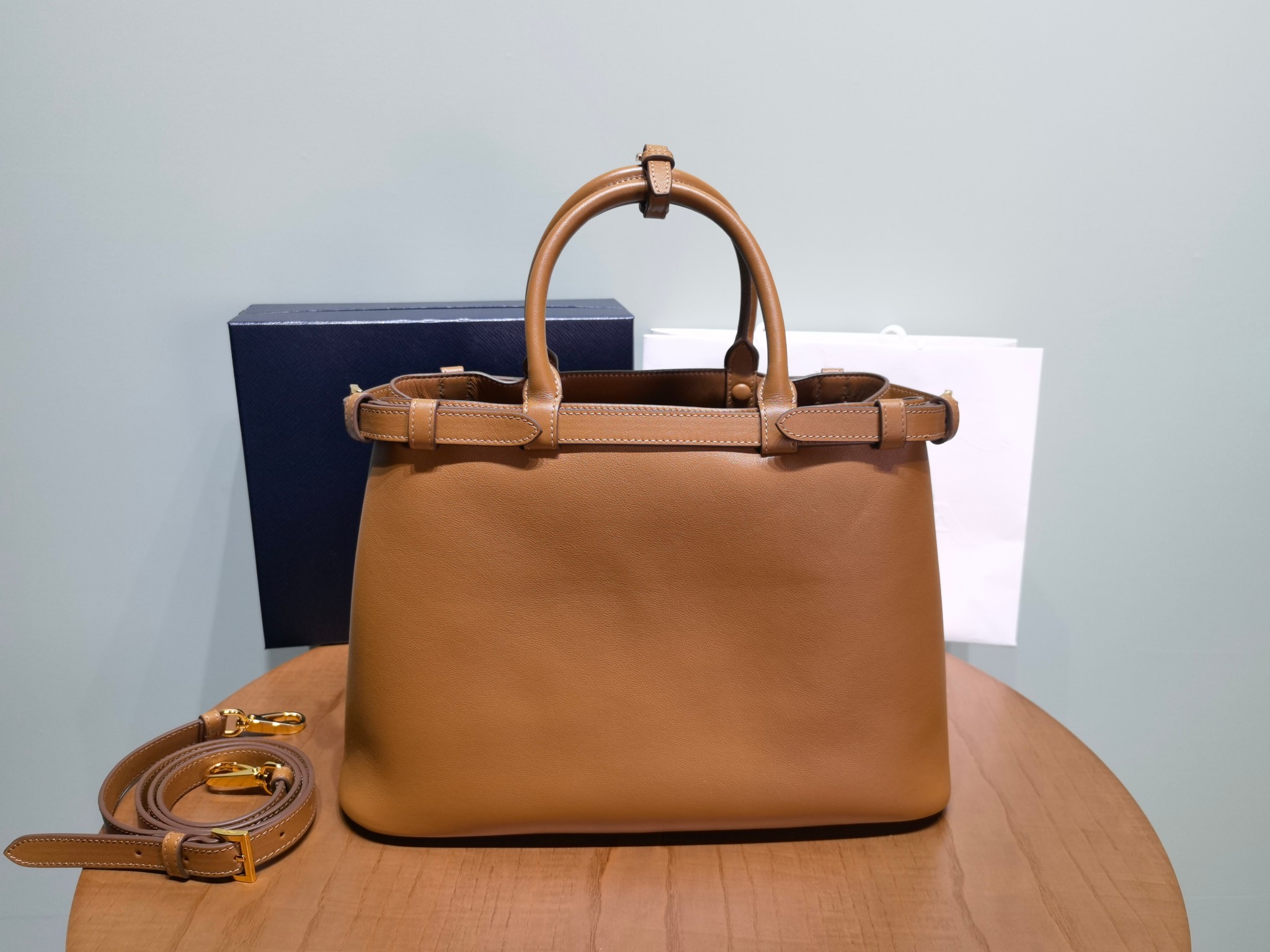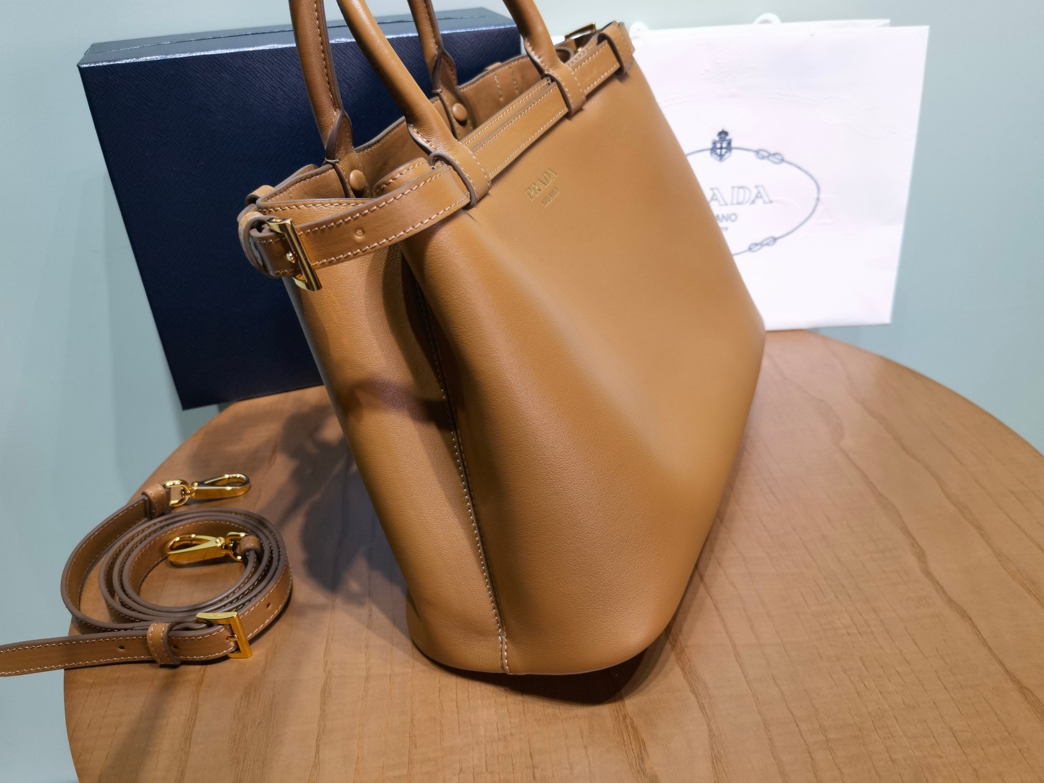 Prada Buckle 1BA417 Medium Leather Drawstring Bag 2