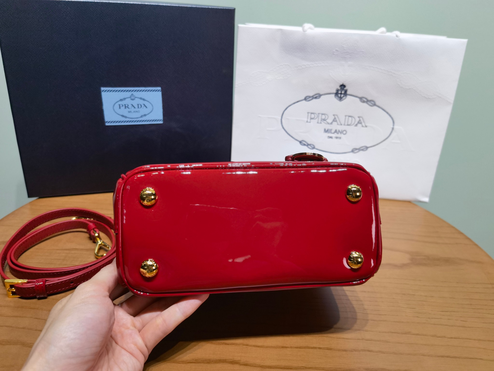 This is a replica Prada Galleria 1BA906 Saffiano leather mini-bag. ,Leather handles,Detachable, adjustable leather shoulder strap. Max. length: 120 cm – Min. length: 110 cm – Max. drop length: 60 cm – Min. drop length: 55 cm,Removable leather key ring,External zipper pockets,Metal hardware,Leather triangle with metal lettering logo on the front,Snap closure on the sides,Logo-print nylon lining with two pockets, including one with zipper,With purse feet,Height: 14.5cm,Width: 20cm,Length: 9.5cm