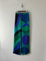 PUCCI green blue swirl print silk trousers