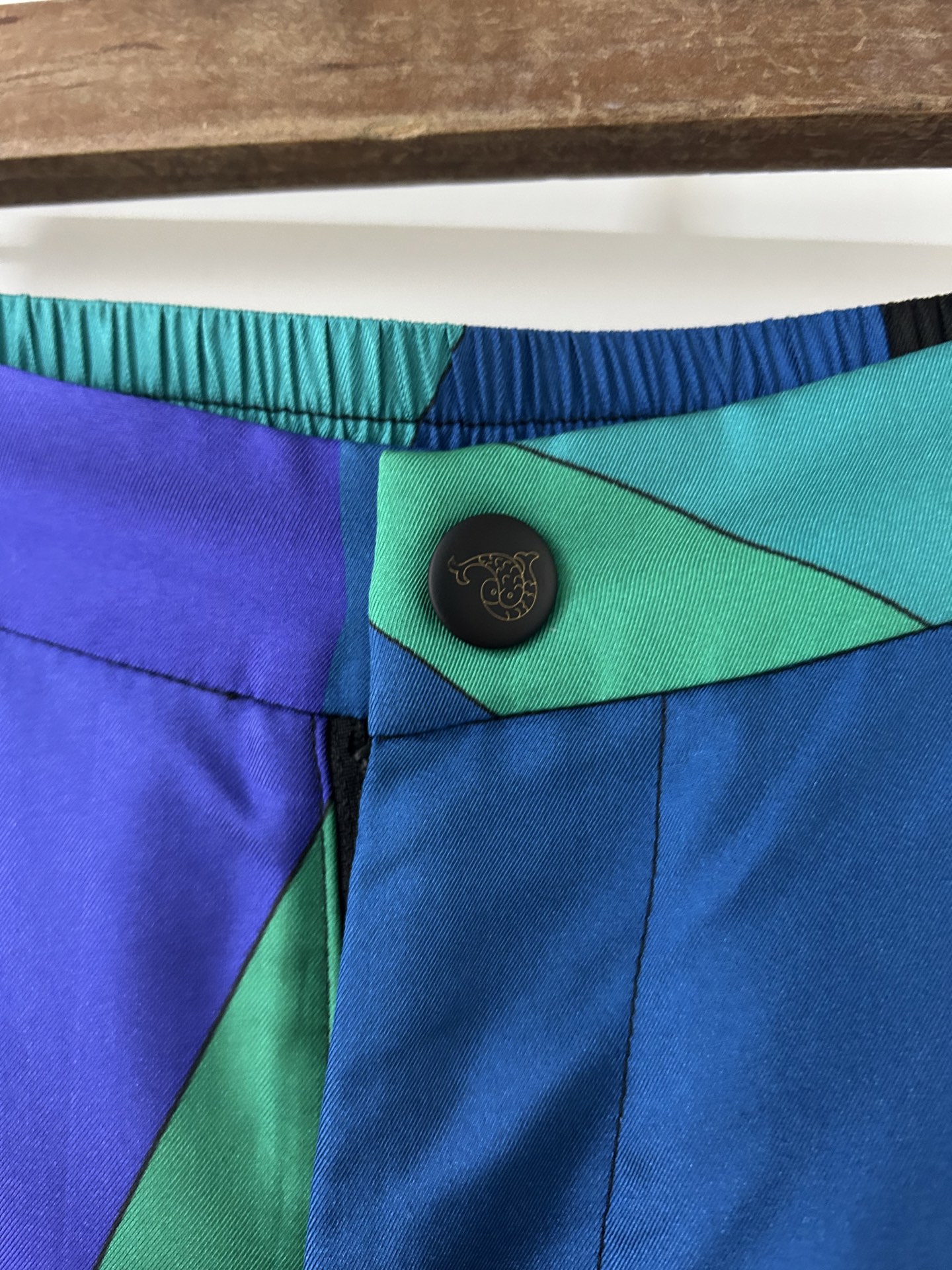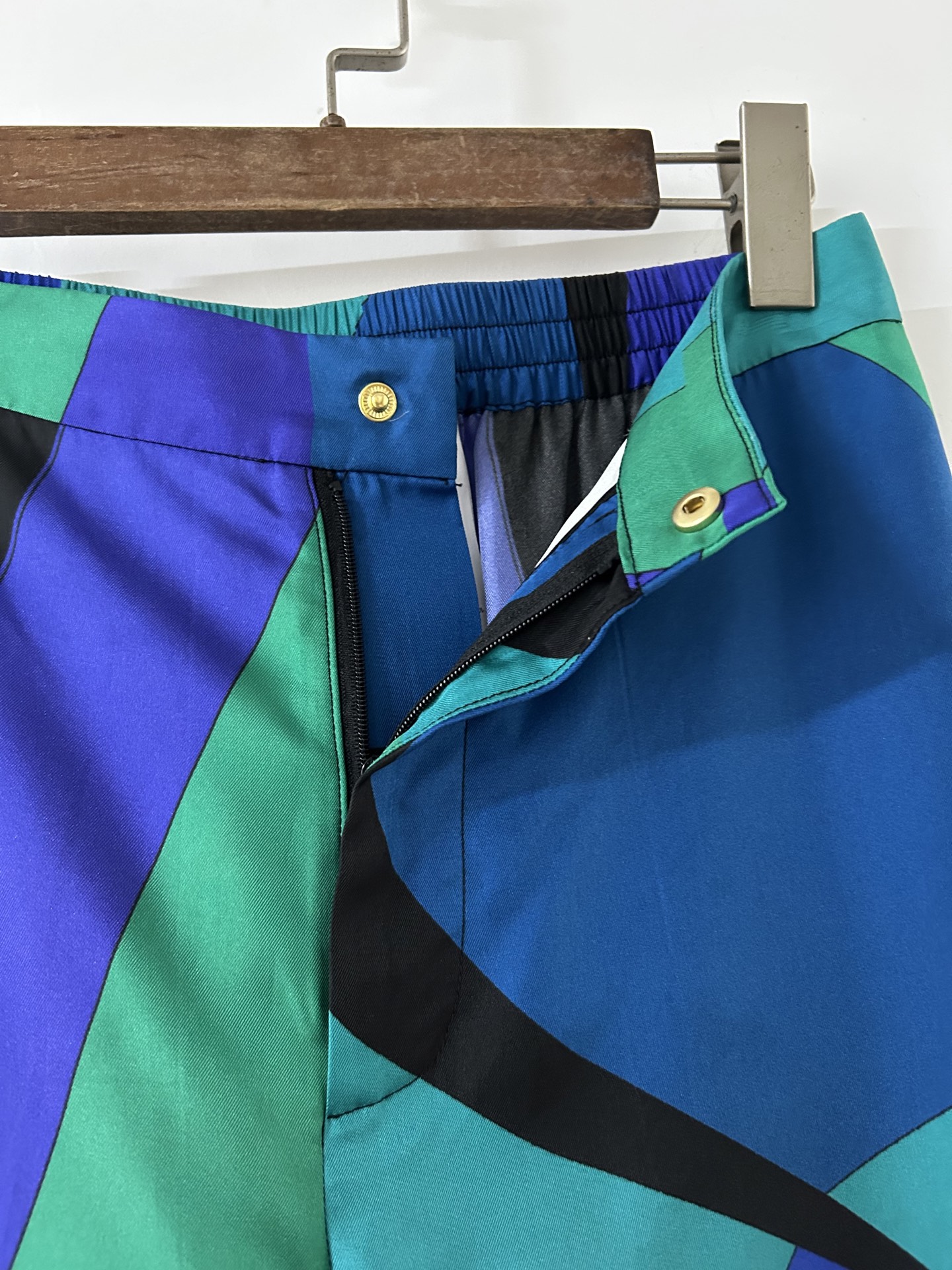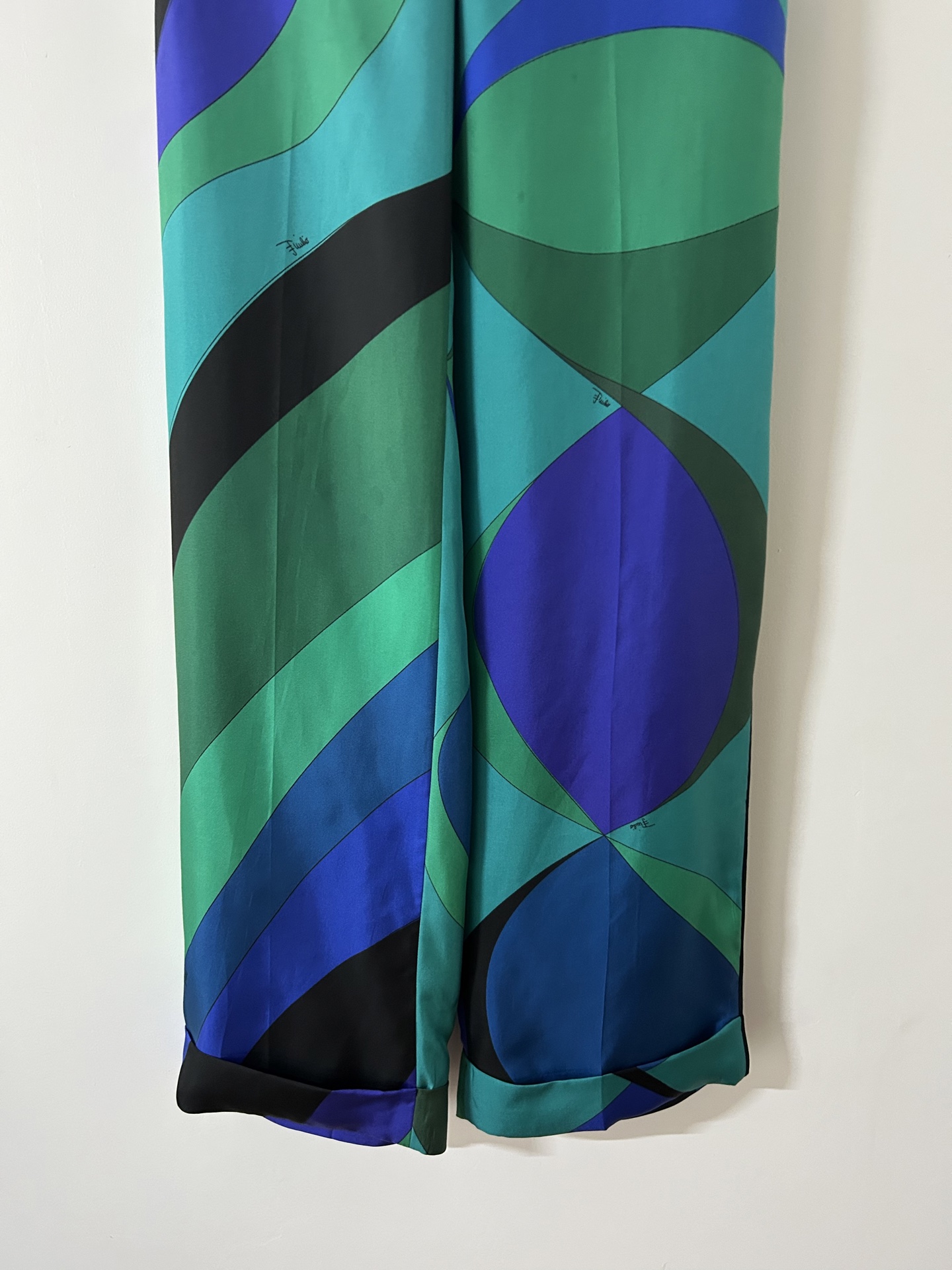 Be the first to review “PUCCI green blue swirl print silk trousers”