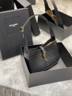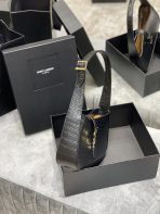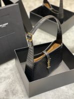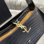 This is an replica SAINT LAURENT Le 5 À 7 in crocodile-embossed shiny leather.,Hobo bag with an adjustable strap and CASSANDRE hook closure.,