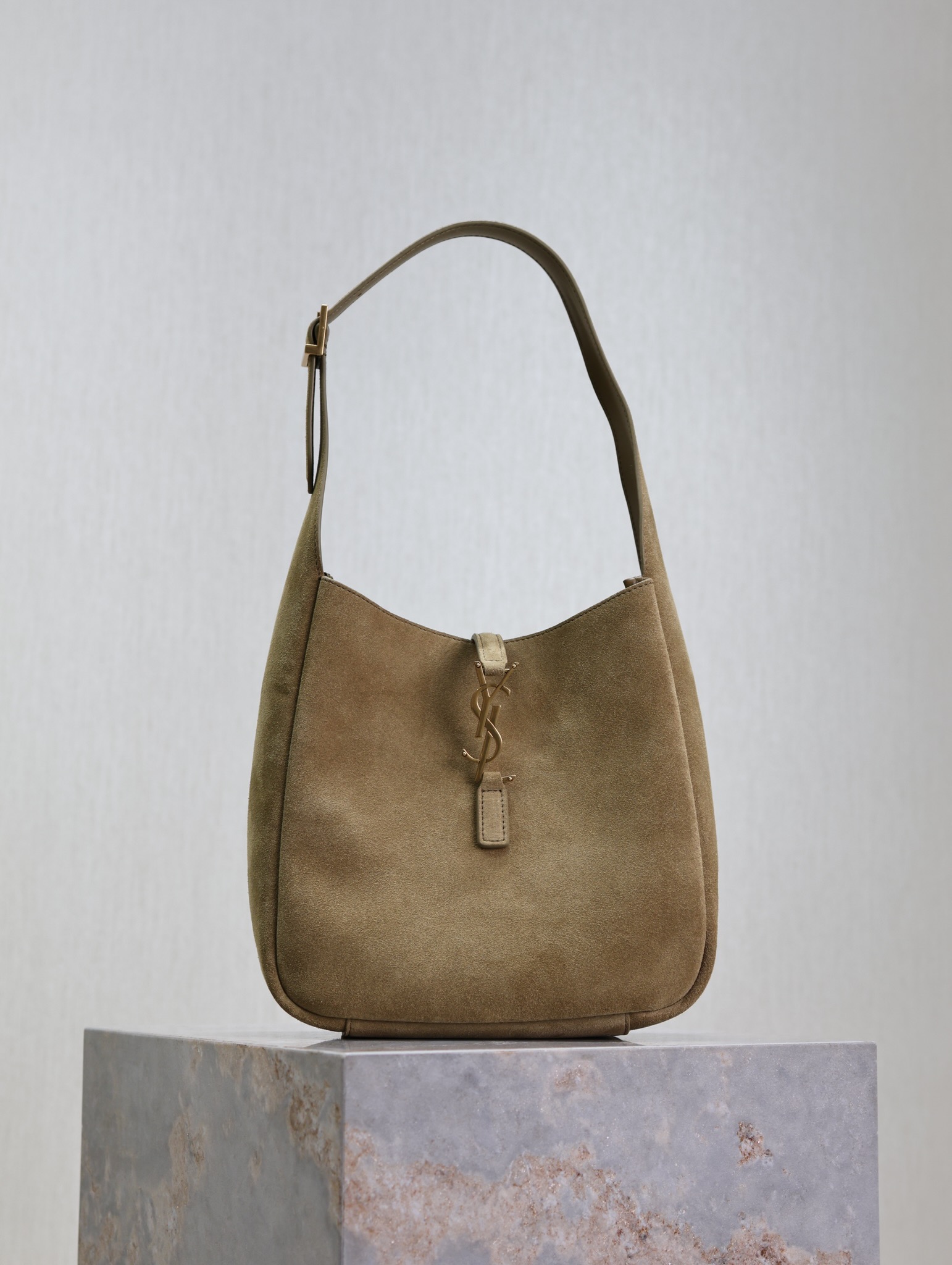 This is an replica SAINT LAURENT small version of the iconic 5 À 7 in suede leather.,