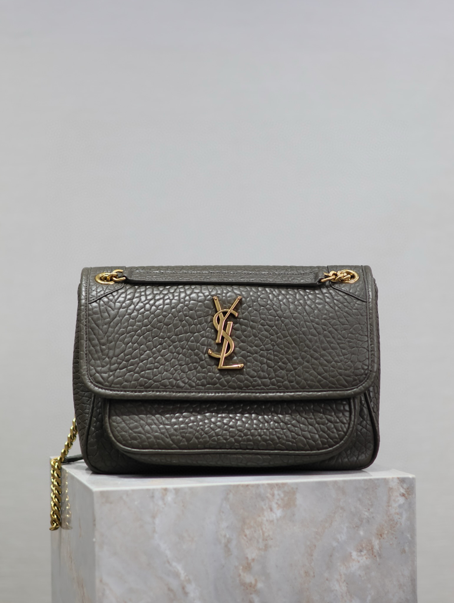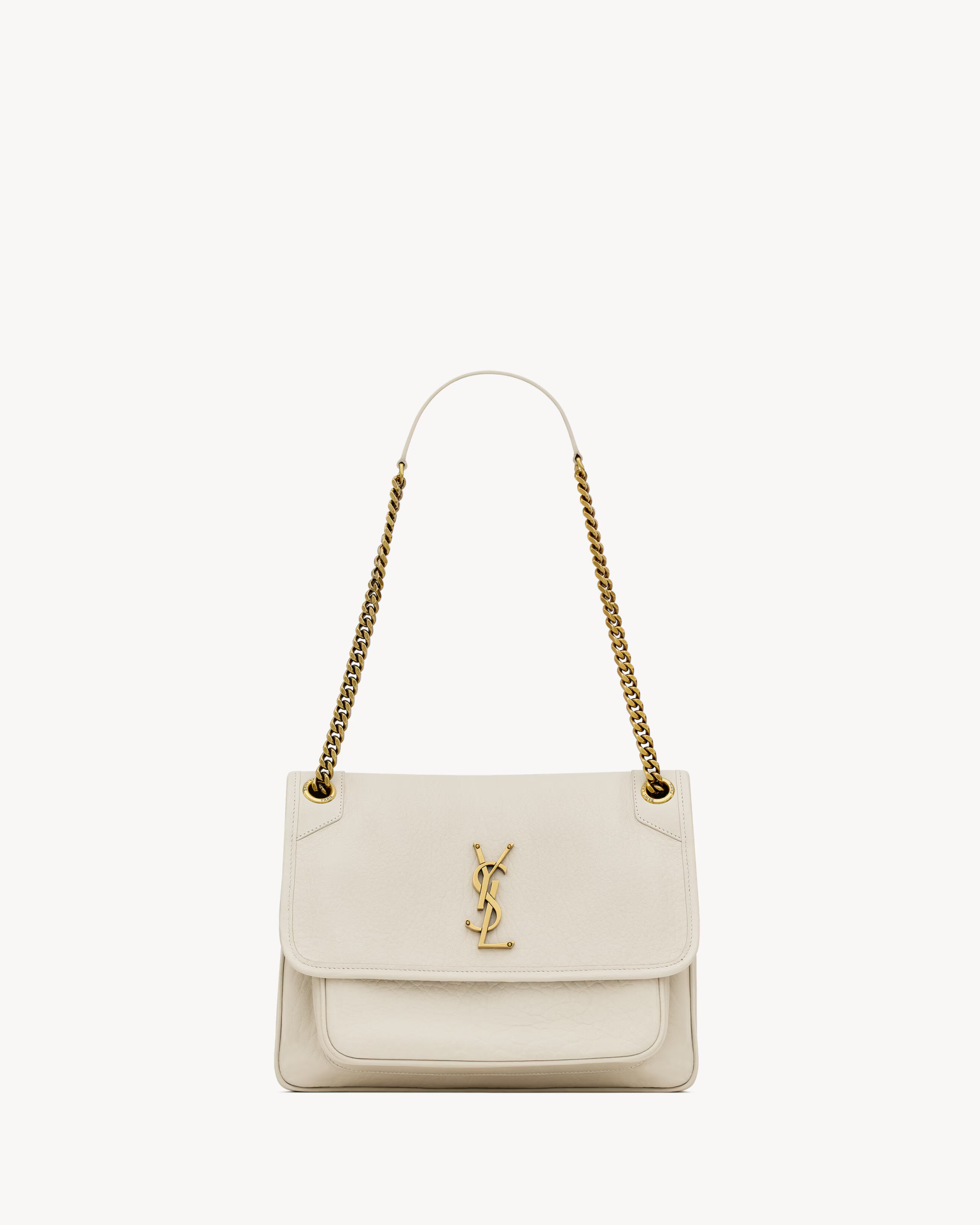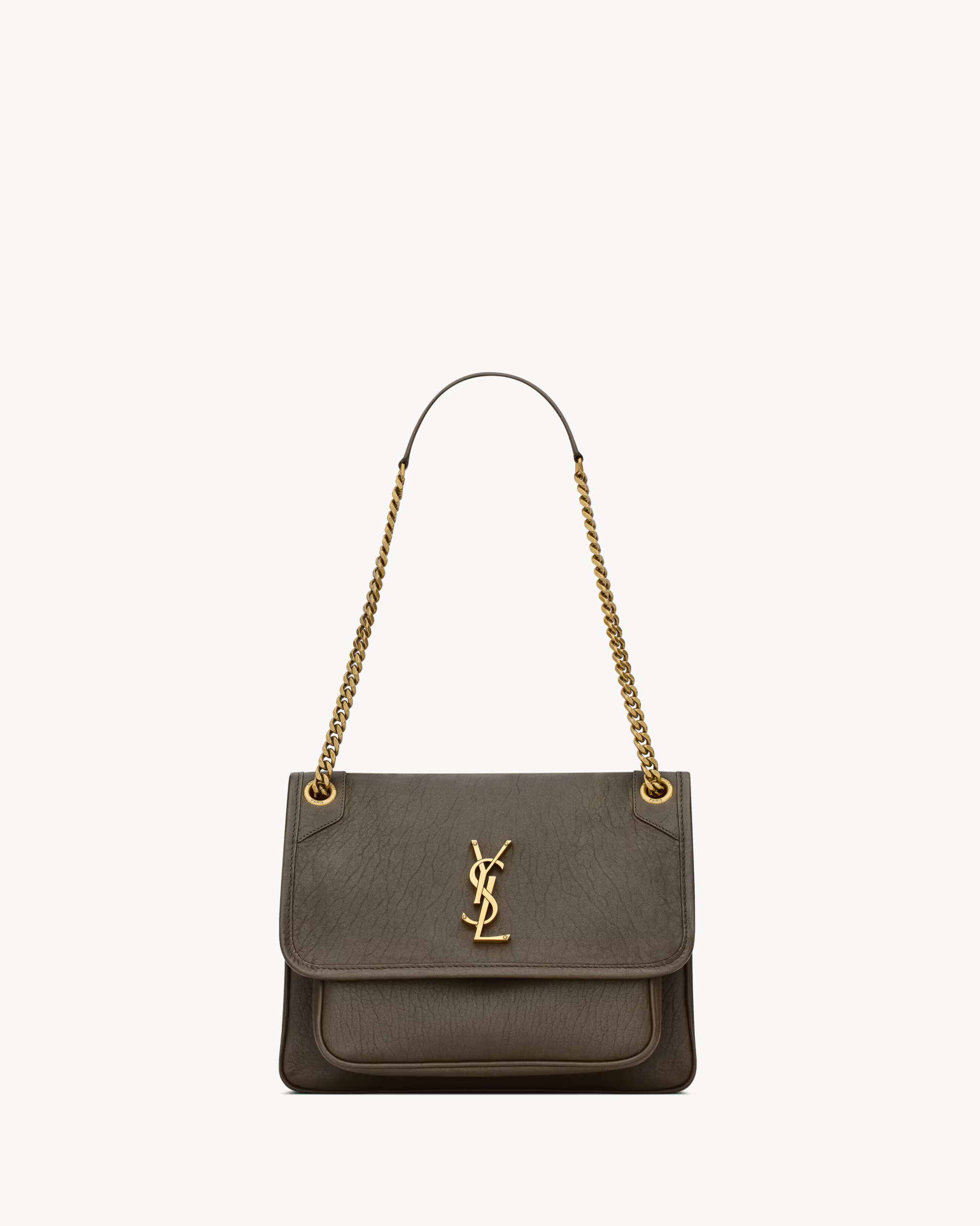 This is an replica SAINT LAURENT NIKI medium in grained lambskin.,FLAP BAG IN VINTAGE CALF LEATHER, FEATURING CHEVRON QUILT OVERSTITCHING AND LEATHER-ENCASED CASSANDRE.,LIGHT, WITH TWO COMPARTMENTS AND A LARGE BACK SLOT POCKET.,FEATURES A SLIDING CHAIN STRAP THAT CAN BE WORN ON THE SHOULDER OR CROSSBODY.,