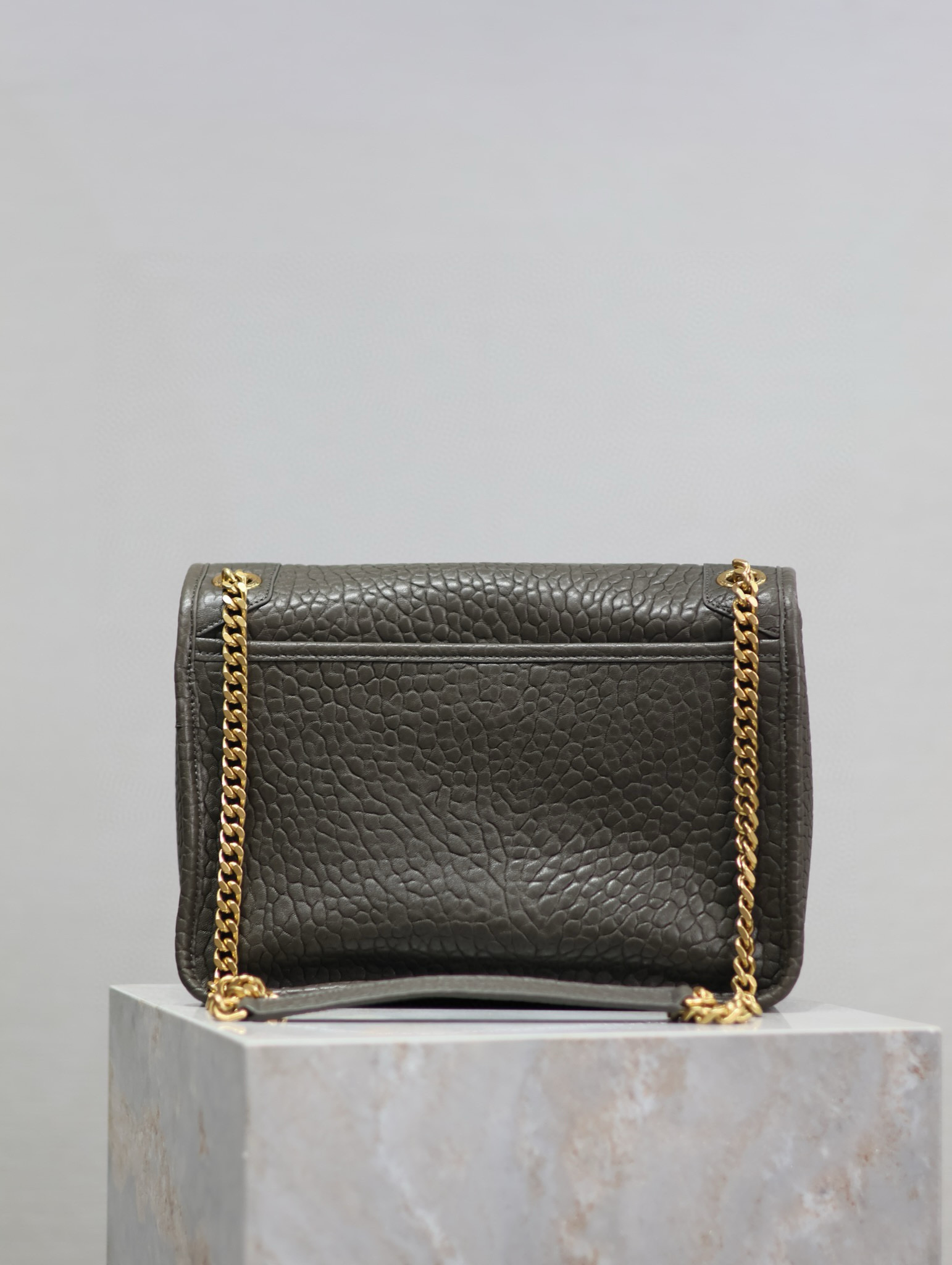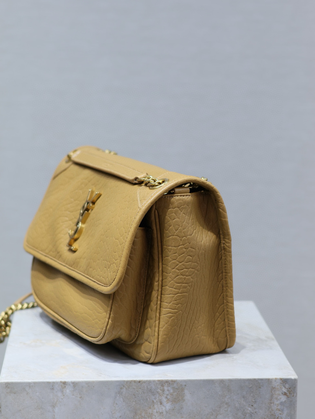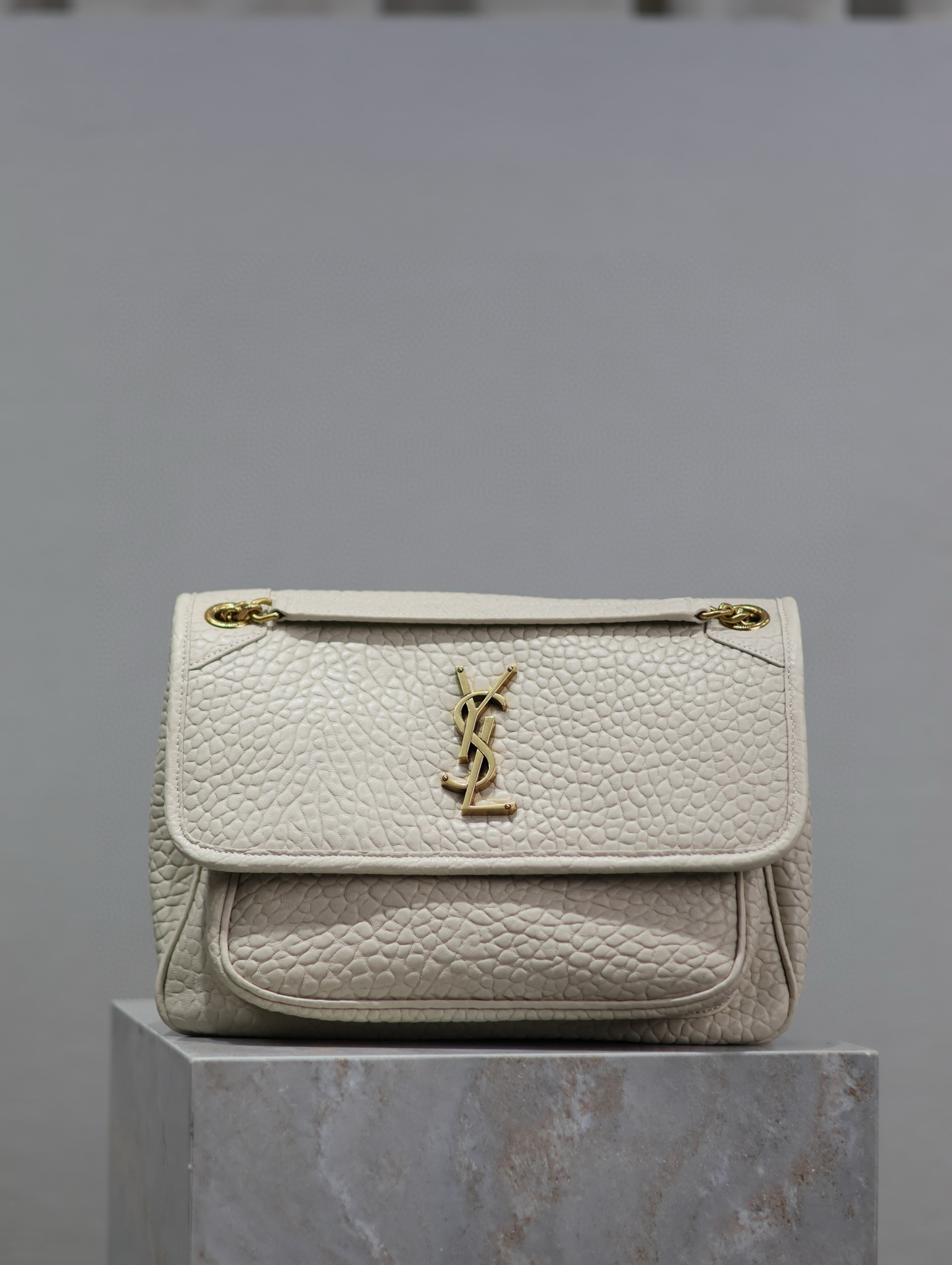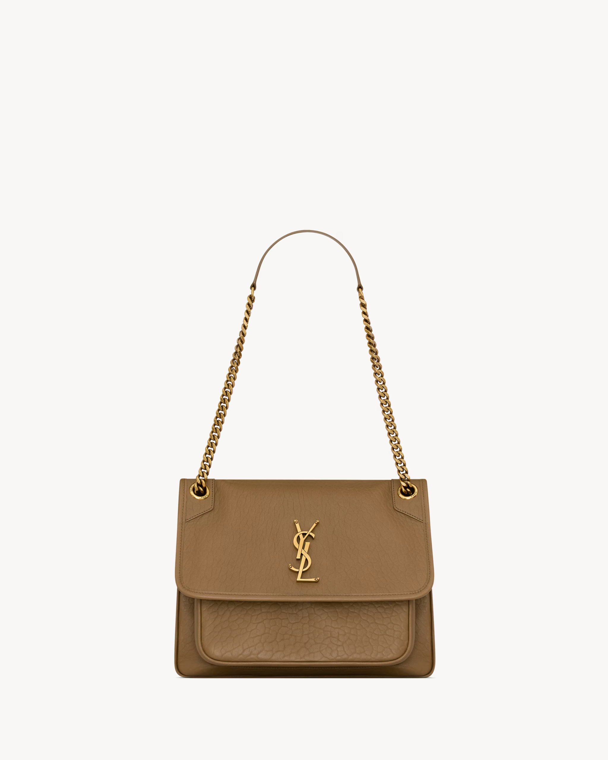 This is an replica SAINT LAURENT NIKI medium in grained lambskin.,FLAP BAG IN VINTAGE CALF LEATHER, FEATURING CHEVRON QUILT OVERSTITCHING AND LEATHER-ENCASED CASSANDRE.,LIGHT, WITH TWO COMPARTMENTS AND A LARGE BACK SLOT POCKET.,FEATURES A SLIDING CHAIN STRAP THAT CAN BE WORN ON THE SHOULDER OR CROSSBODY.,