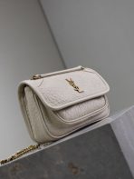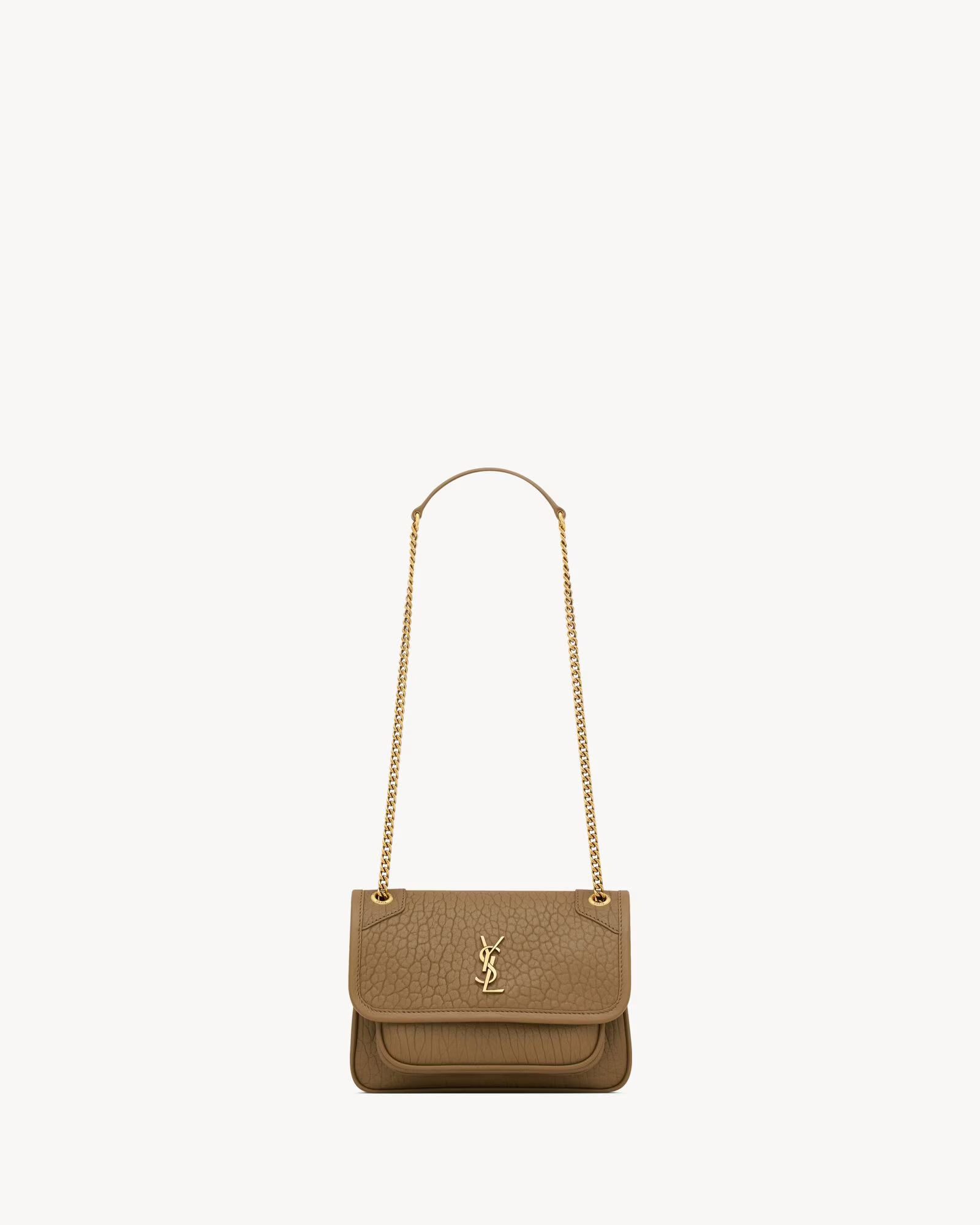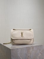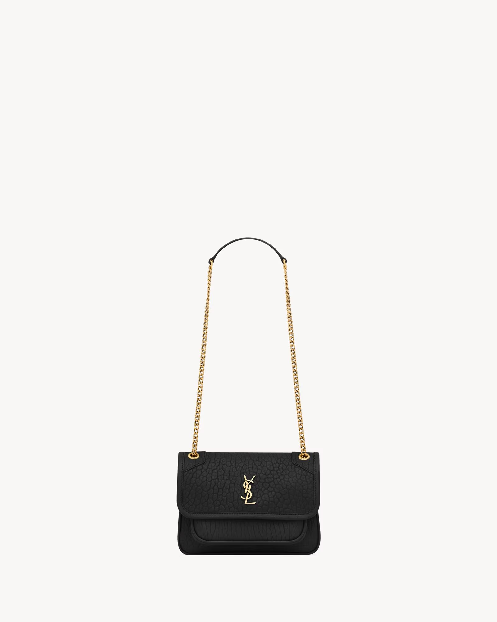 This is an replica SAINT LAURENT NIKI mini in grained lambskin.,This practical, lightweight bag features two main compartments and a back pocket.,A sliding chain strap provides both shoulder and crossbody carry options.,