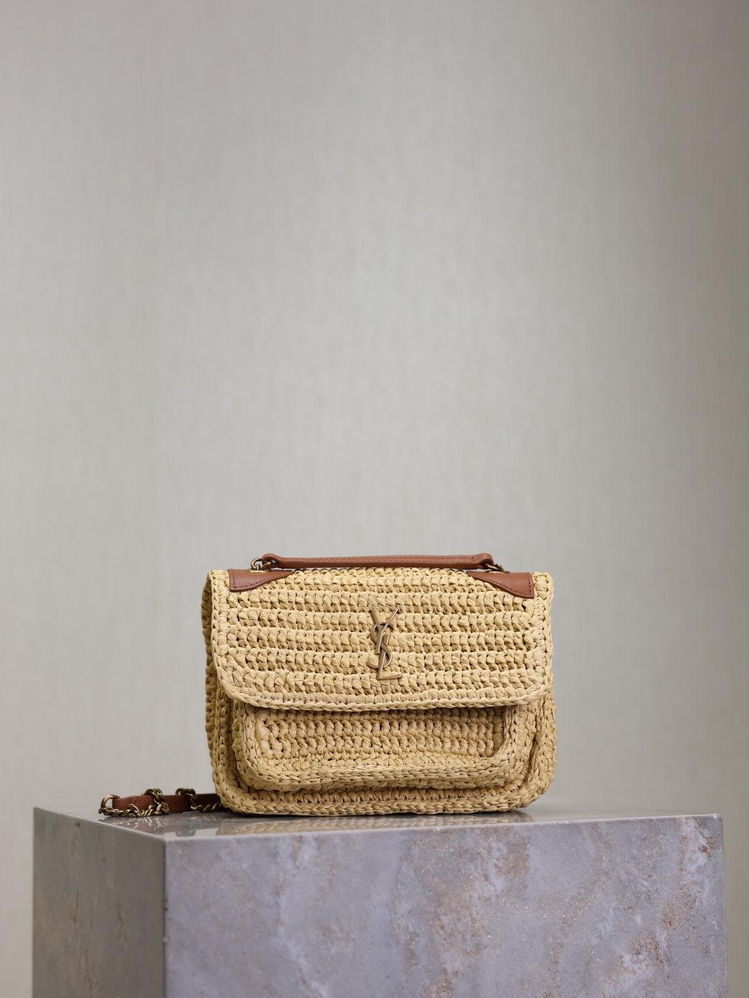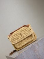This is an replica SAINT LAURENT NIKI mini in raffia.,This practical, lightweight bag features two main compartments.,A sliding chain strap provides both shoulder and crossbody carry options.,Bronze-toned hardware,Magnetic snap closure,Two main compartments,One flat pocket,Dimensions: 12.5 X 18 X 5 CM / 4.9″ x 7.1″ x 2″,DOUBLED STRAP DROP: 30 CM / 11.8″,SINGLE STRAP DROP: 55 CM / 21.7″,